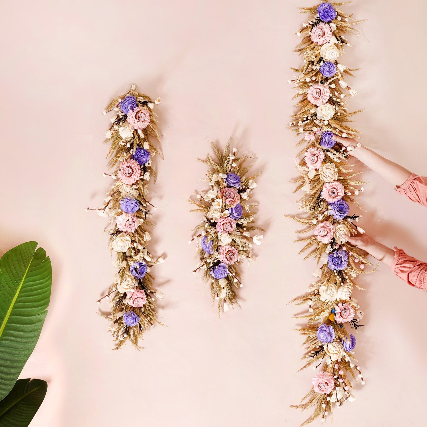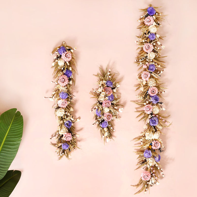 Design: Adorned with delicate sola pith flowers, naturally dried grasses, and small twigs, these decor pieces bring a touch of nature indoors. The intricate design of each piece is complemented by sturdy back ropes, allowing for easy hanging and perfect arrangement.