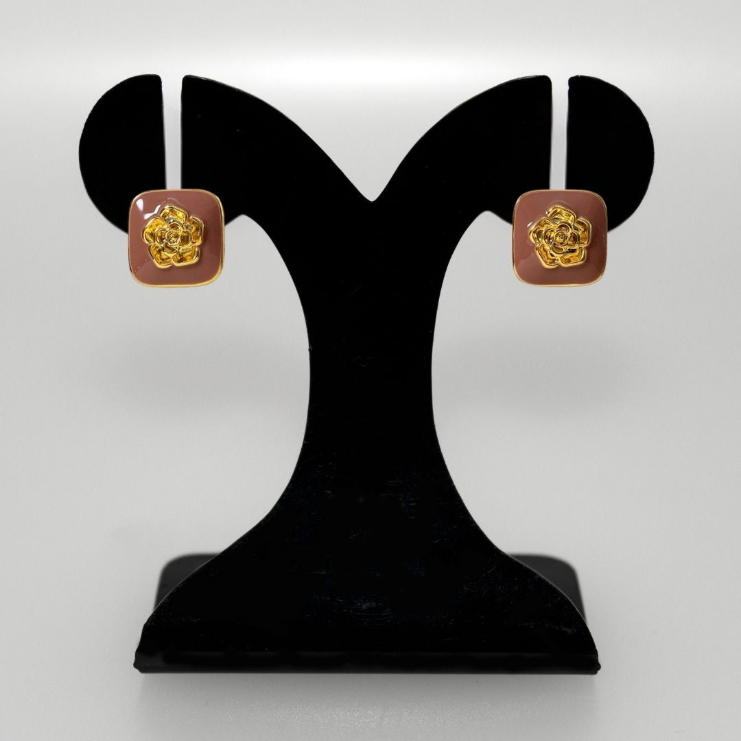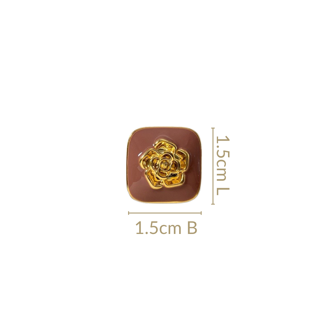 This pink resin stud is a delicate fusion of elegance and charm. Featuring a beautifully embossed metallic rose at its center, the design radiates timeless appeal. The gold metal border adds a touch of sophistication, perfectly framing the soft pink hue.