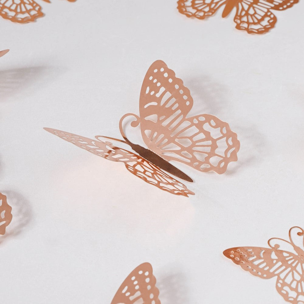 Rose Gold Butterfly 3D Wall Stickers Set Of 12