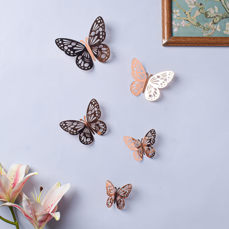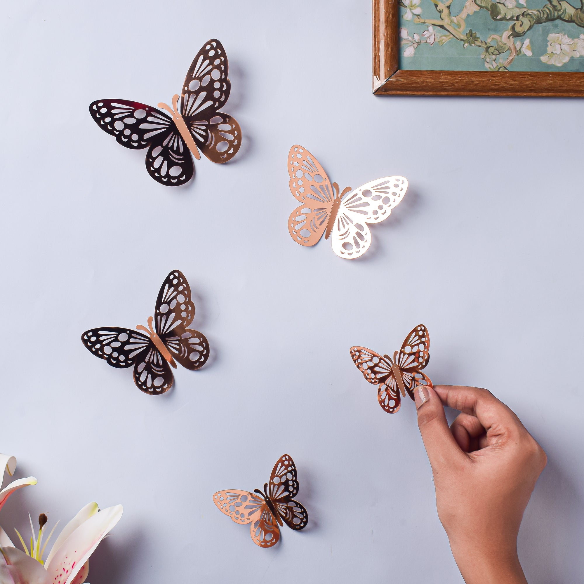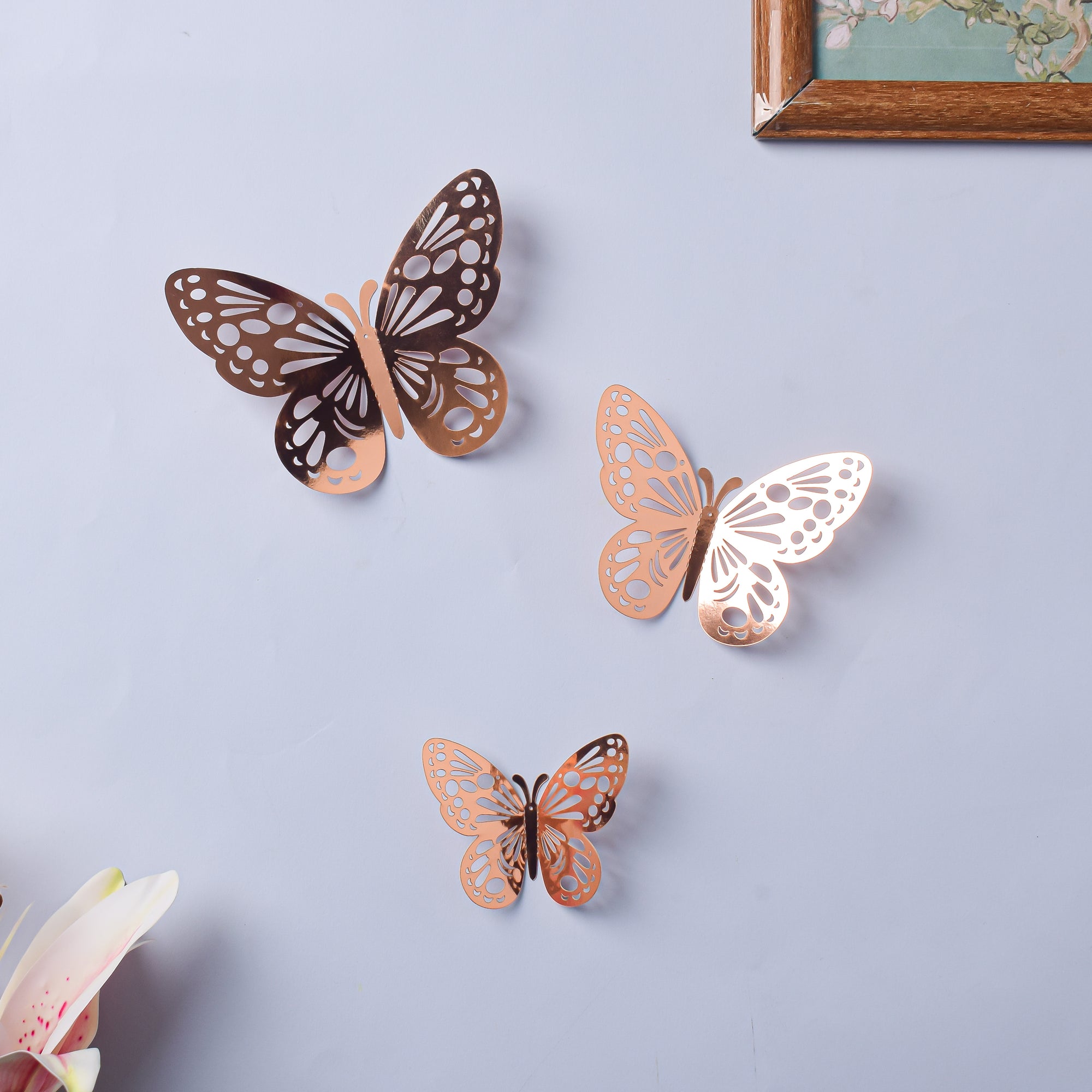Rose Gold Foil Butterfly 3D Wall Stickers Set Of 12