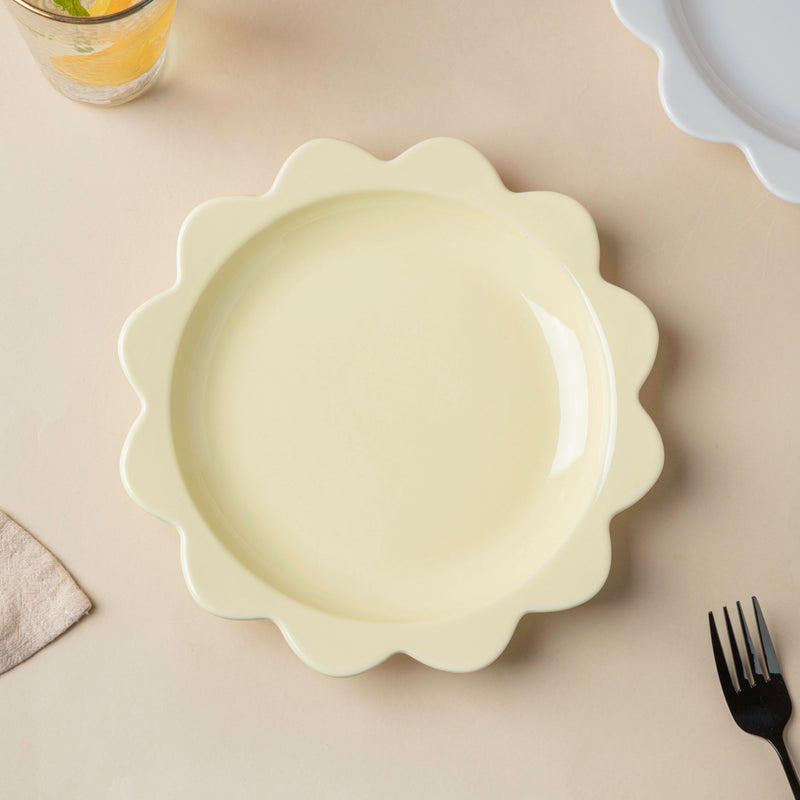 Rosette Ceramic Snack Plate Pastel Yellow 8.5 Inch