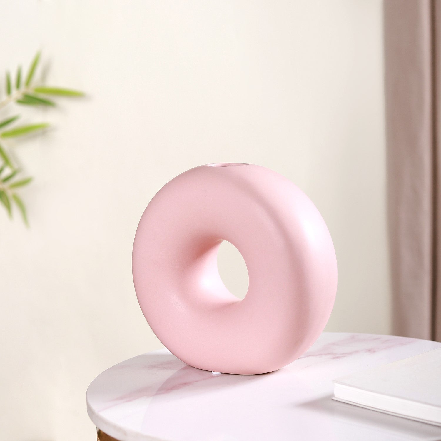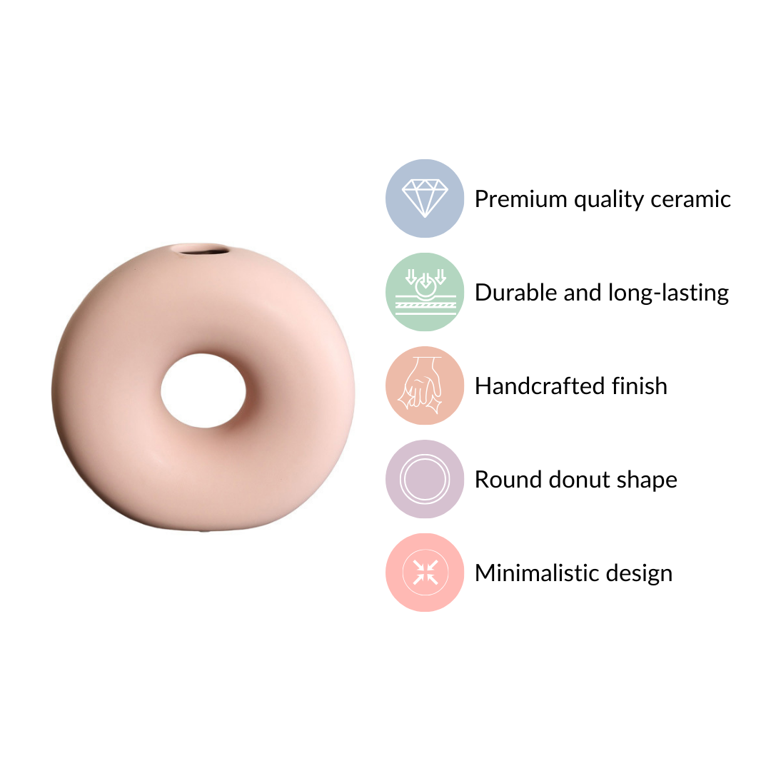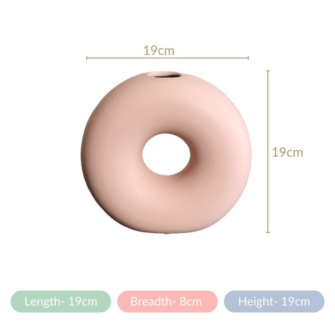 This exquisite and aesthetically pleasing donut vase is made of high-quality ceramic. This vase is meticulously crafted from premium quality ceramic, ensuring exceptional durability and long-lasting beauty. Its handcrafted textured finish and distinctive round donut shape, combined with its minimalistic design, make it a versatile and elegant addition to your decor. Furthermore, its ceramic construction makes it easy to clean and maintain, allowing it to remain pristine with minimal effort. While it is best suited for single flowers, it serves as the perfect accents for living room decor and makes for thoughtful and stylish gifts for various occasions.