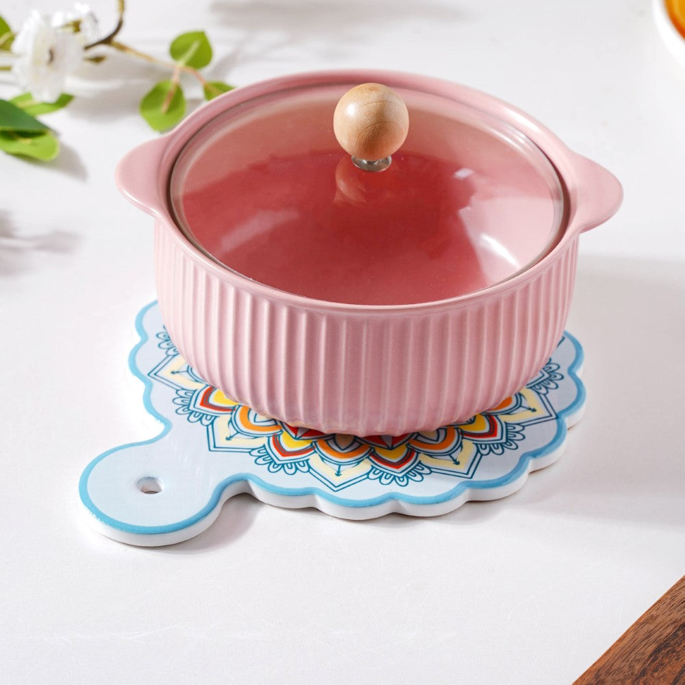 The traditional Moroccan tile pattern and Persian style art are well-known throughout the world. They can be called the “world’s eighth wonder” for their intricacy, vibrant hues, and harmonious blend of mandalas. Our collection of ceramic coaster/trivet is a gateway to incorporate this eighth wonder into your living room, dining table or as a beautiful decor piece. While the trivets are the quintessential companion of your ceramic, earthen, copper, clay, glass pots, hotpots, pans, bowls and plates, other cookware, the coasters can be the new best friends of serveware, wine glasses, cocktail glasses, and glass coffee mugs or cups.