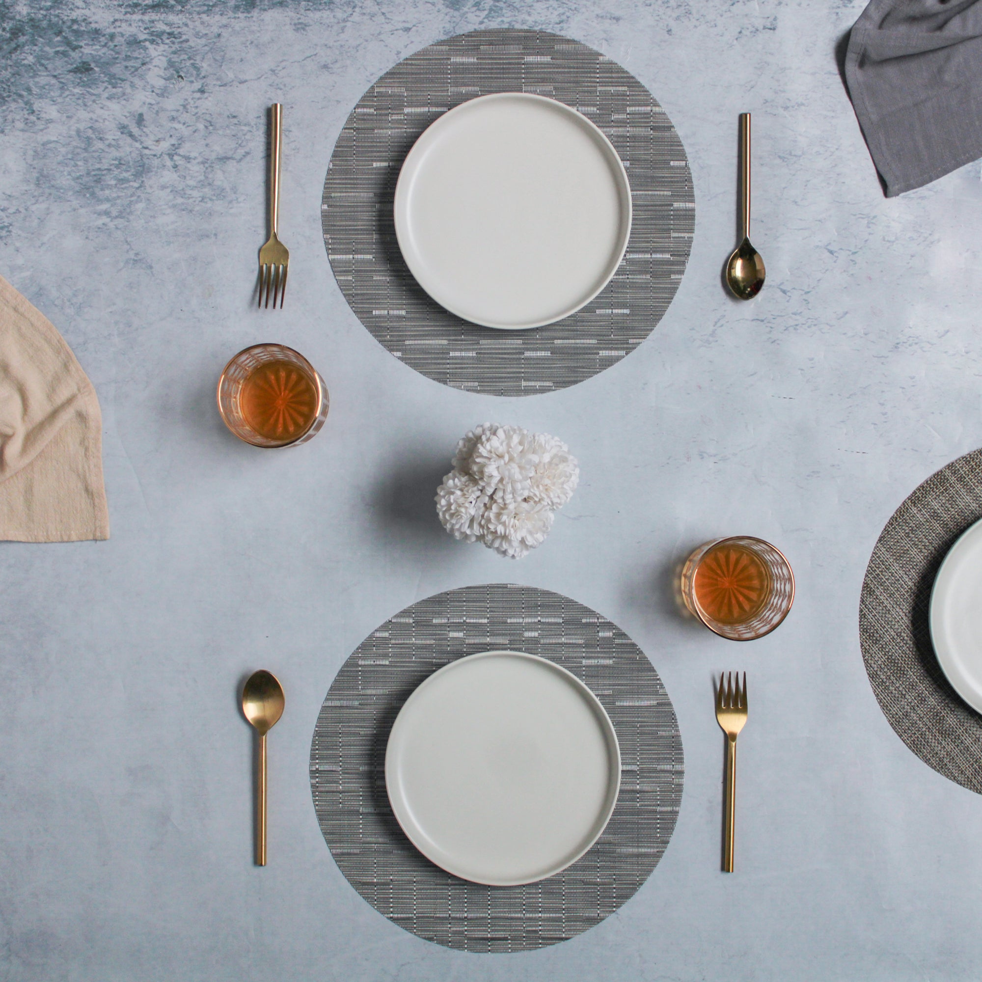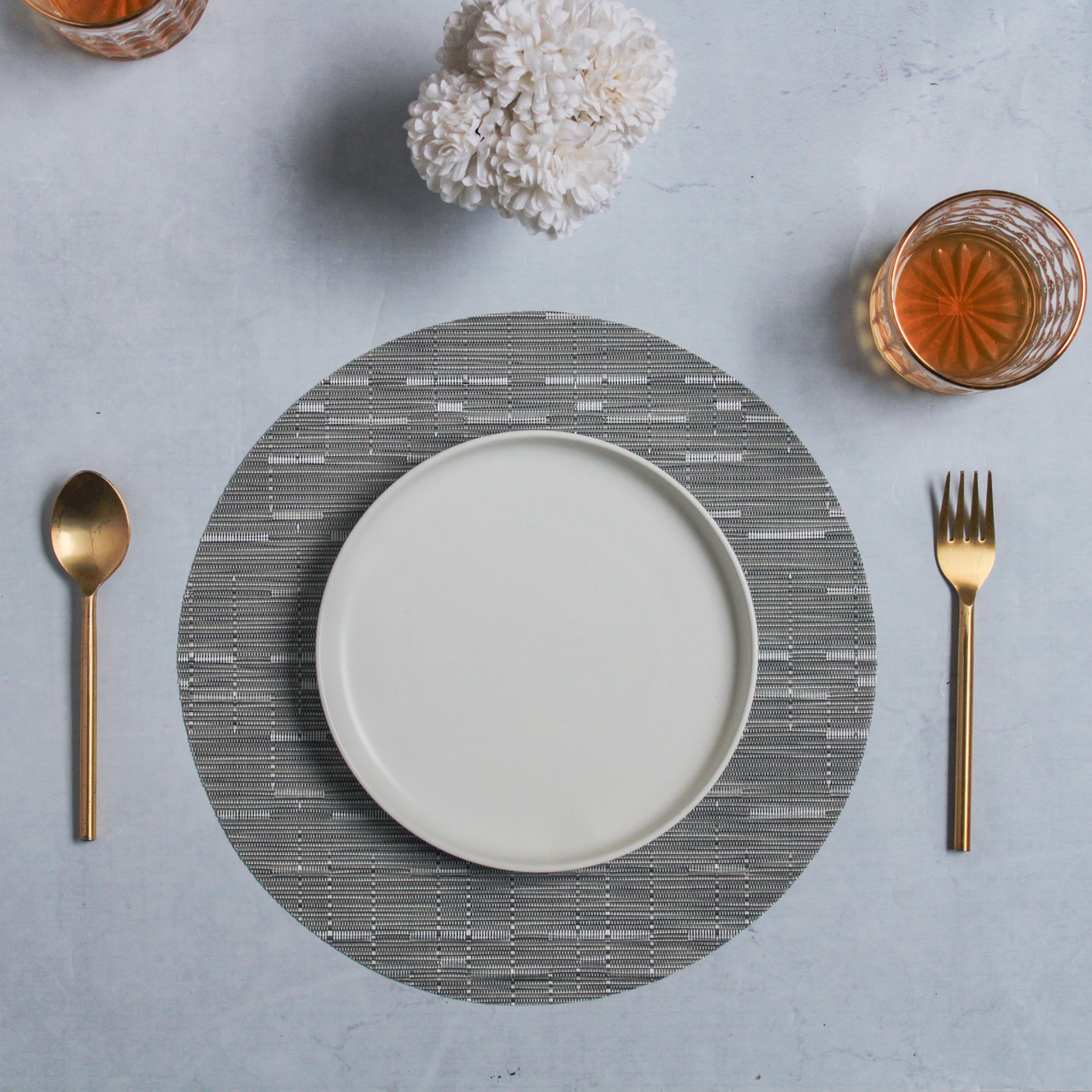 Made out of good quality PVC, the dining table mat in a round shape is the perfect element to add some class to the dinner table. Available in a sober color that can seamlessly blend with any dining room decor, the grey table mat is going to protect the table from spills, heat and any additional damage. The round placemat is also easy to use, clean, dry and store when not in use.