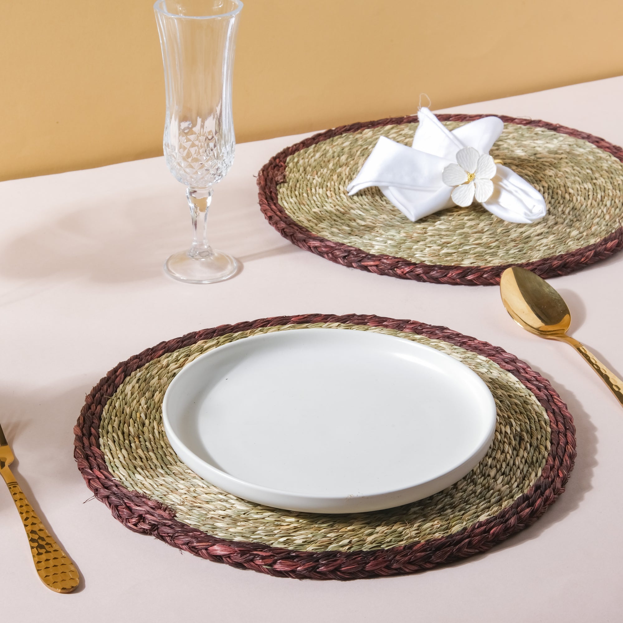 The sabai trivet is used to move hot utensils from the kitchen directly onto it during meals, reducing heat damage to the dinner table. The sabai trivets come in a pair of two and are also eco-friendly, adding to their total durability and robustness. The inside of the round shaped trivet is made of natural grass, and the perimeter is painted with natural vegetable dyes to provide a pop of colour to the table. Handwoven by local artists, the ecologically friendly placemats are a lovely addition to any dinner table. It may be used as a dinner table mat by placing an 8-inch dish on it.