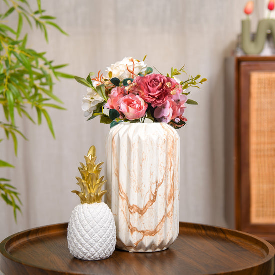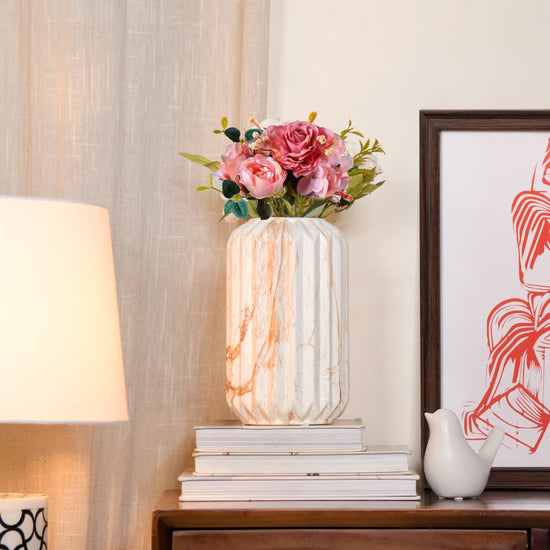 Transform your home decor with our meticulously handcrafted ceramic vase, a timeless symbol of elegance. Its ribbed texture and velvety matte finish provide a sensory delight, while the marble-inspired design exudes Scandinavian sophistication. Crafted with both aesthetics and utility in mind, this decorative vase features an anti-skid foam base for unwavering stability, even with your grandest floral arrangements. Effortless to clean and maintain, it elevates your living room decor with a touch of refined luxury. Embrace the fusion of style and functionality with this exquisite ceramic flower vase, destined to be a cherished centerpiece in your home.
