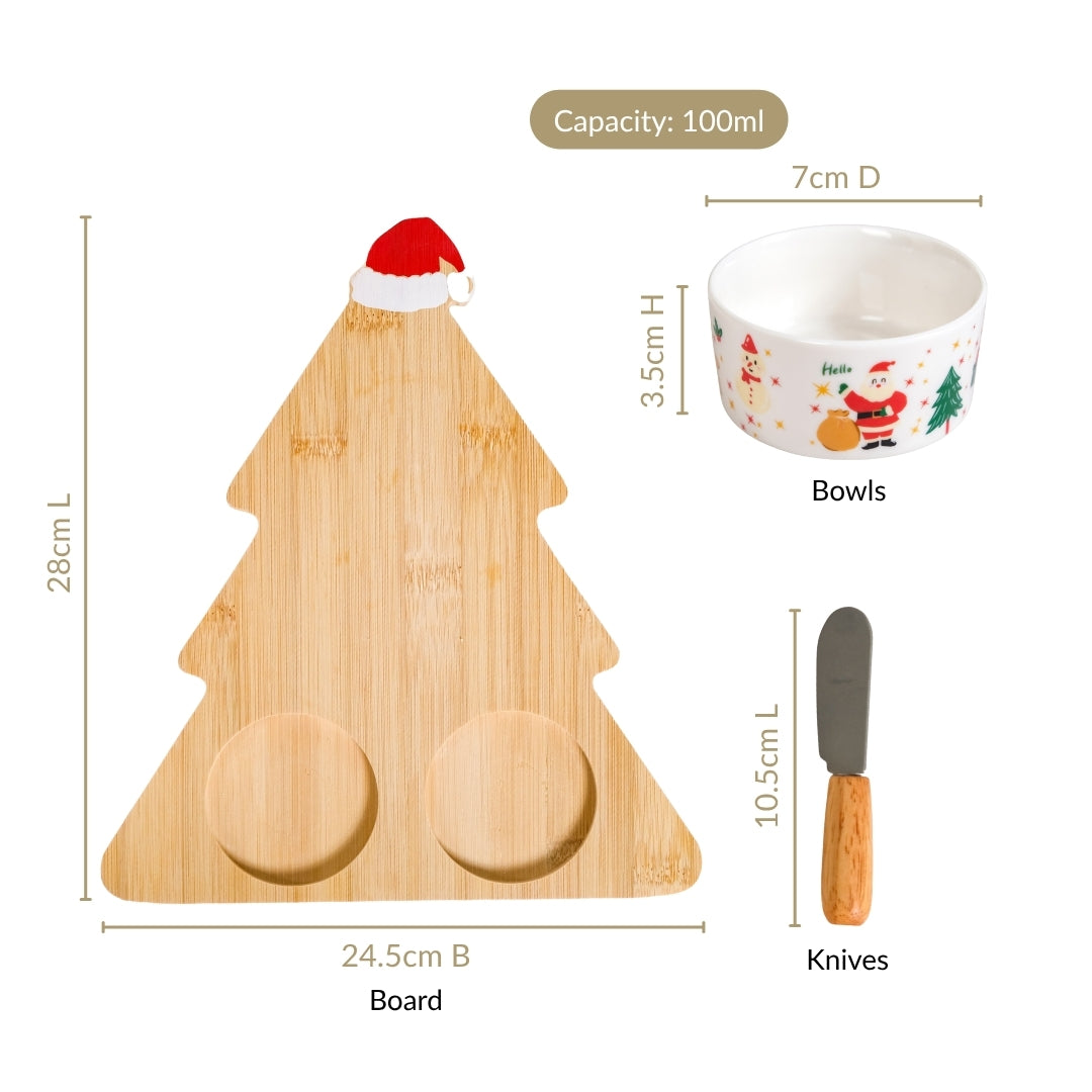 Santa Hat Tree Cheese Board With Bowls Spreader Knives Set Of 5