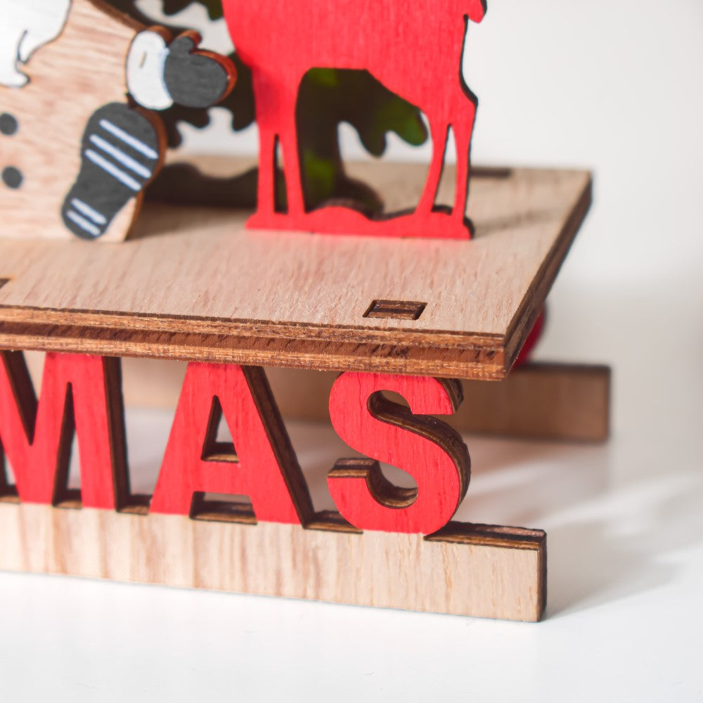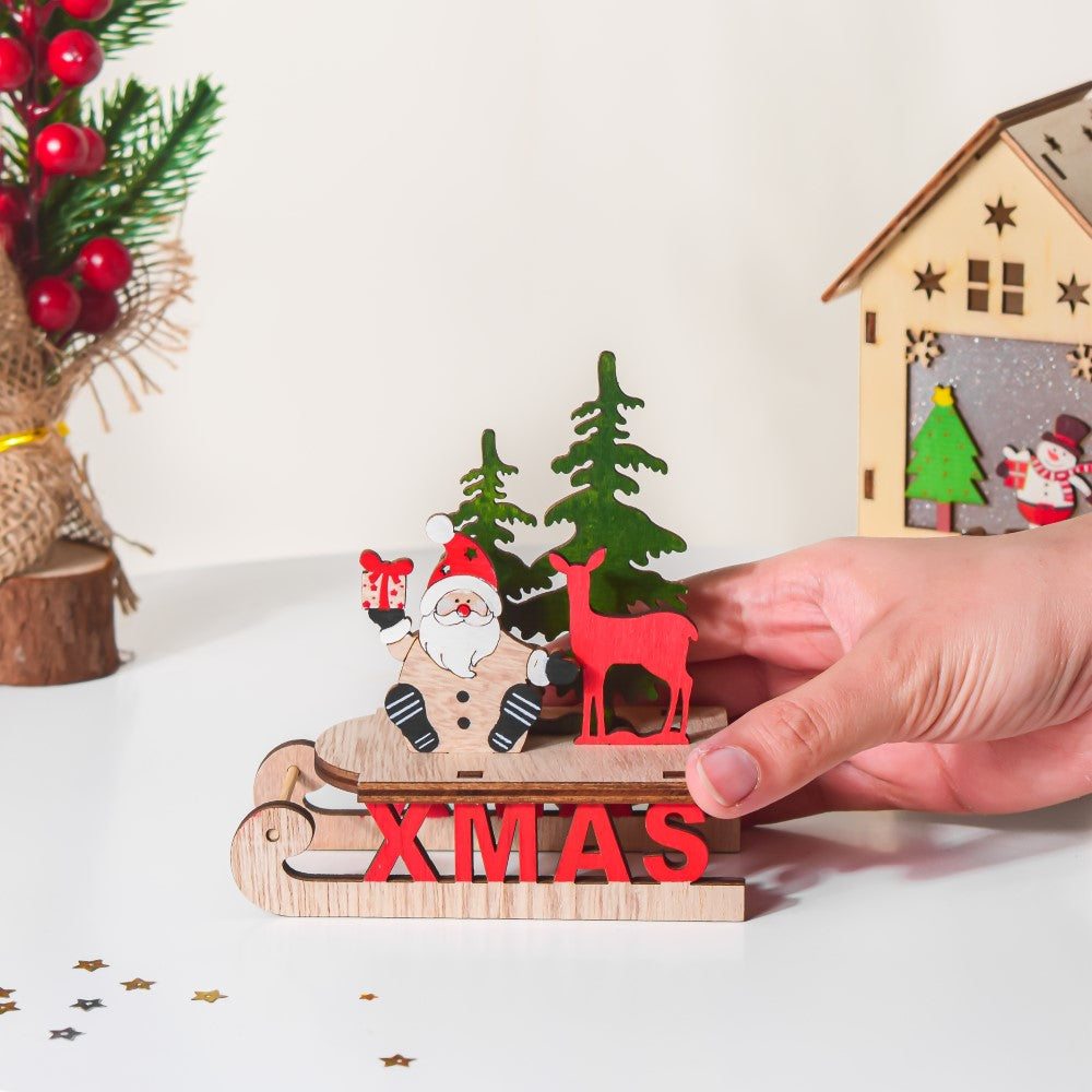The DIY wooden decor ornament comes in the shape of a sleigh to accentuate the shelves of any room. The Christmas-themed ornament has a miniature sleigh with a house and a tree, with a beloved Christmas character on top. The adorable decor showpiece, with Santa and the reindeer is going to bring much-needed festive cheer into the house.Features:-DIY decor object-Easy to assemble-Premium quality-Handcrafted-Best for gifting Nestip: The DIY decor object can be gifted to kids as a toy. Size: 11cm L x 5.5cm B x 12cm H Color: Beige, red, green, black, and white Material: Wood Products included: 1 Christmas decor object Style: JSS51S116