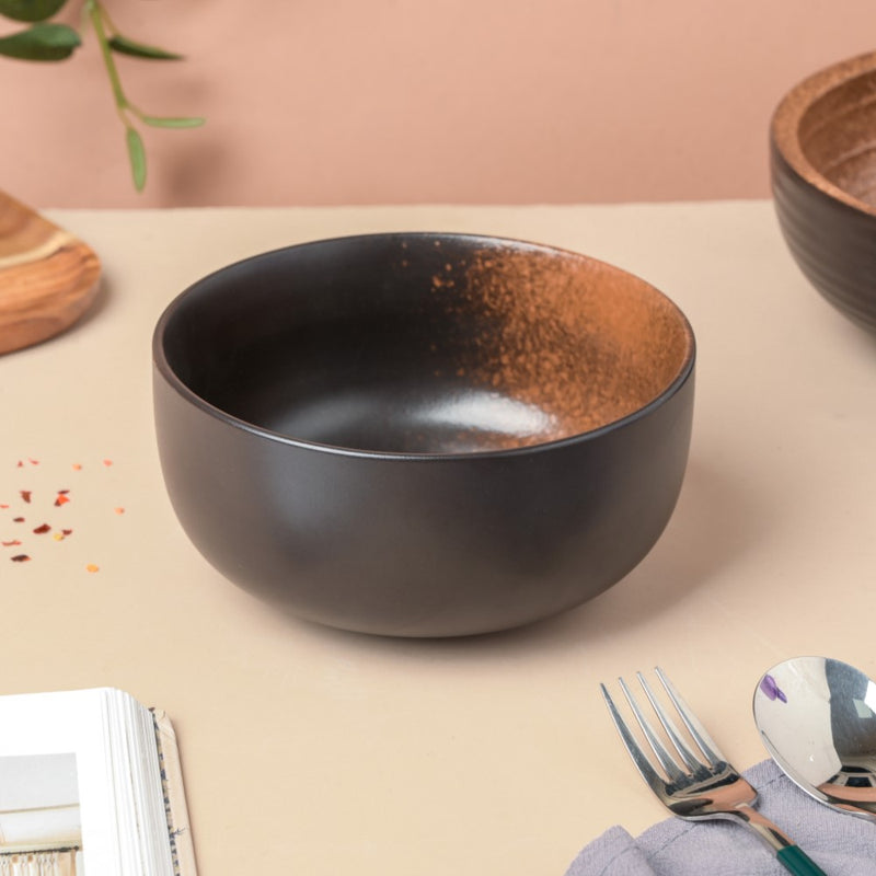 The ombre spray painted bowl comes with a flat base which can be a great addition to a contemporary or cottage-core set-up. Serve curd, salad, raita or sliced fruits from the ceramic bowl to individual snack bowls. The rustic handmade Asian curry bowl can even double up as a bowl for serving soups and salads.