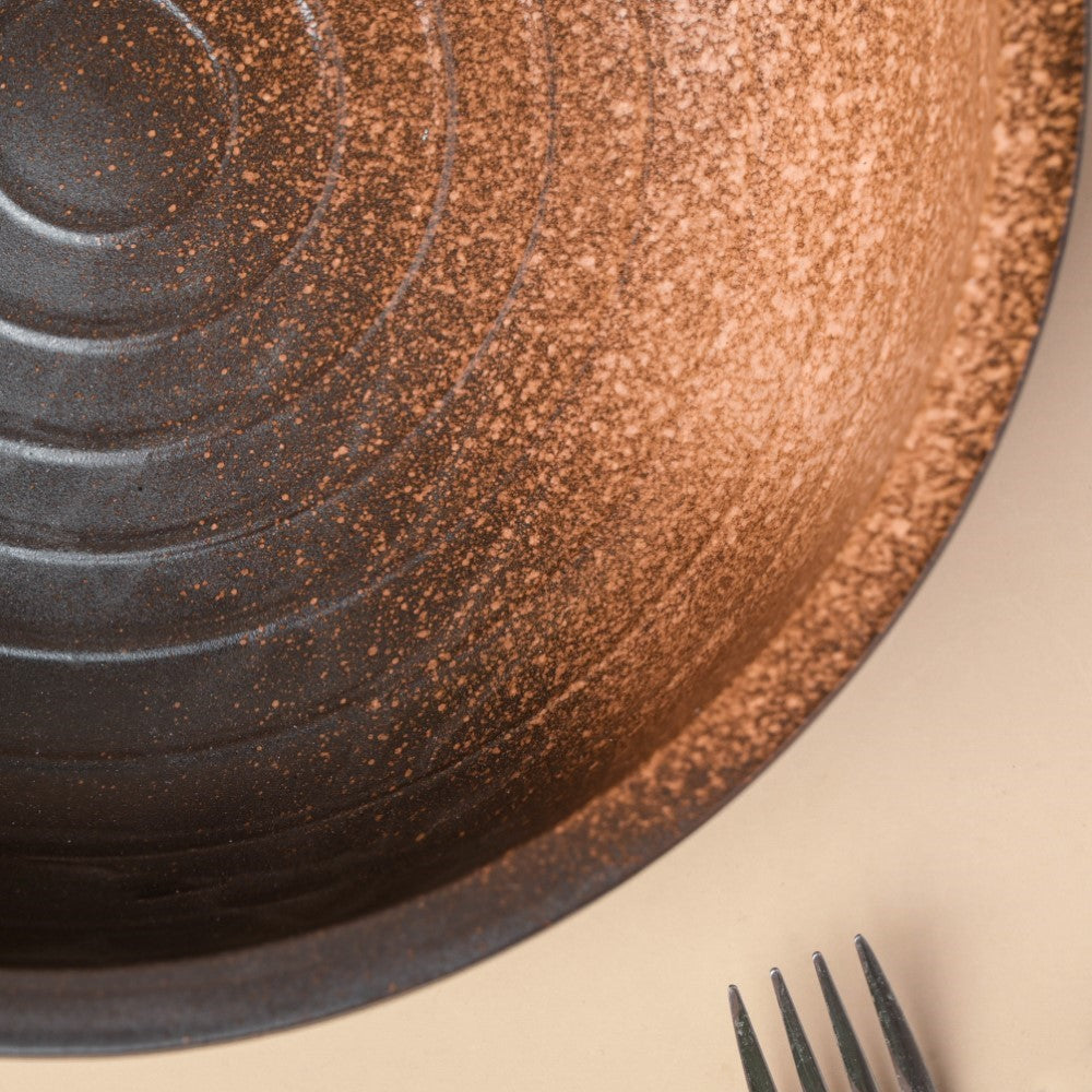 The eye-catching black and brown combination of the earthy bowl will enhance the appearance of the meal served in them. The earthy serving bowl leaves a lasting impression on visitors. Large servings of popcorn, chips, nachos, and other evening snacks can be served with tea or coffee in the microwave, oven, or dishwasher-safe ceramic bowl. The neutral color of the serving bowl makes it stand out on any dinner or snack table.