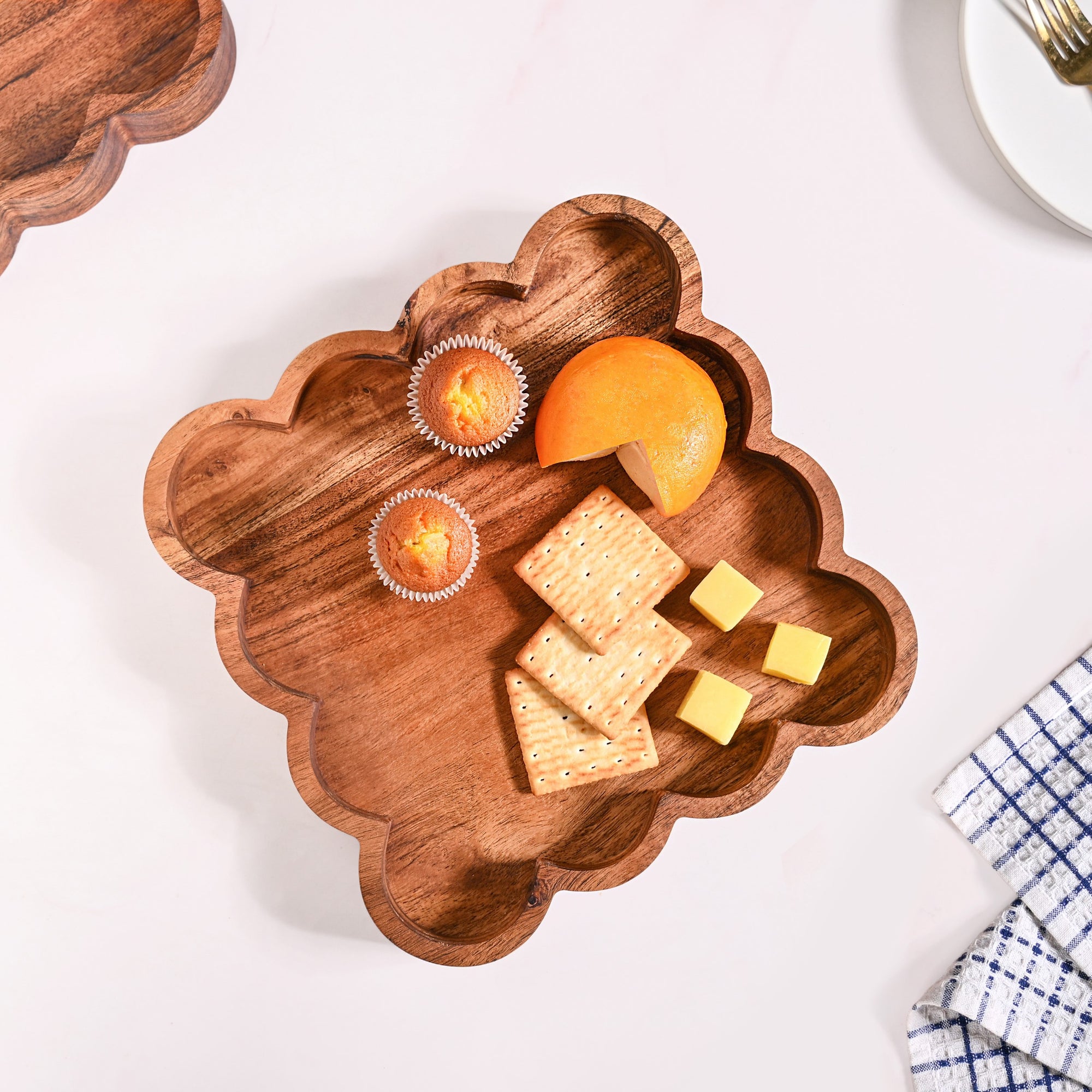 Benefits: Made from strong acacia wood, the platter tray promises durability and sustainable quality for everyday use. The scalloped square shape creates a steady base, providing ample space for serving food or drinks without spills. With its rustic, handcrafted design, the platter feels versatile enough for casual dining, festive gatherings, or gifting as eco-friendly serveware.