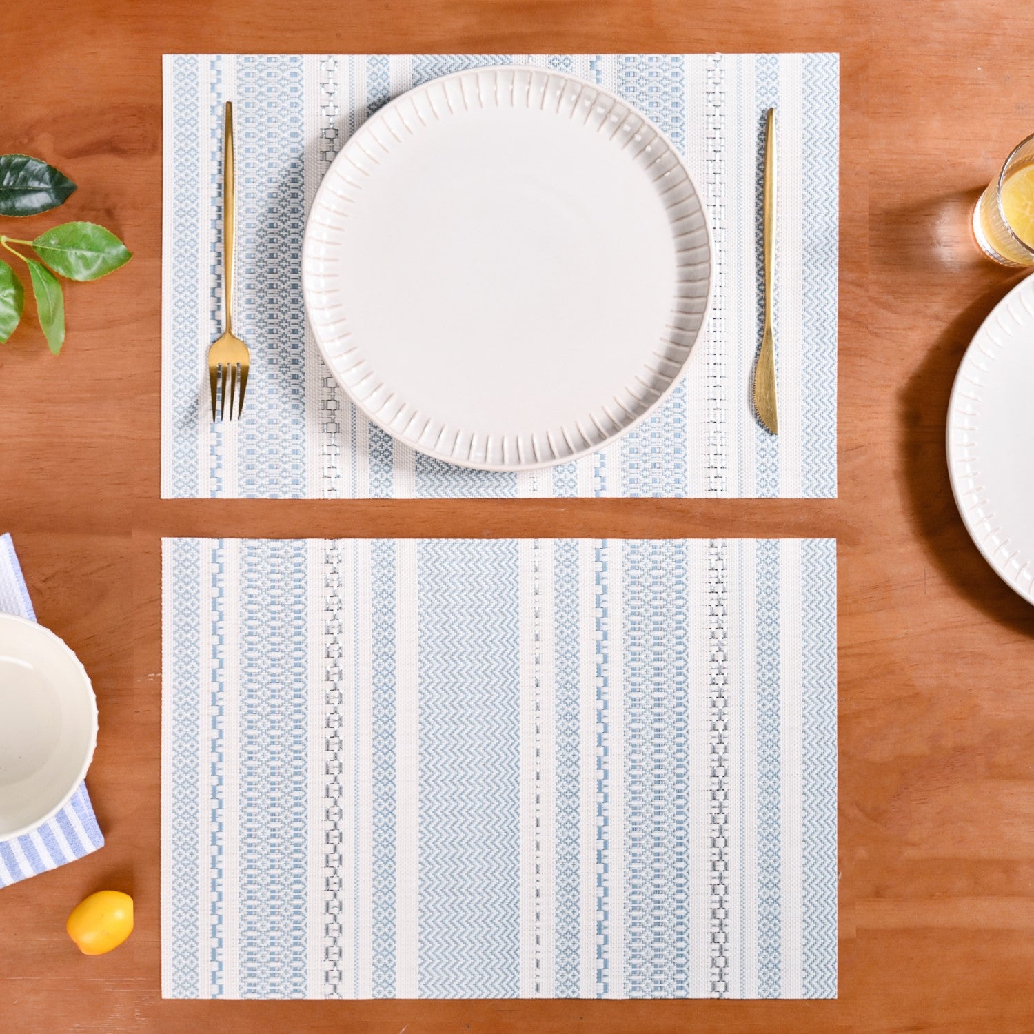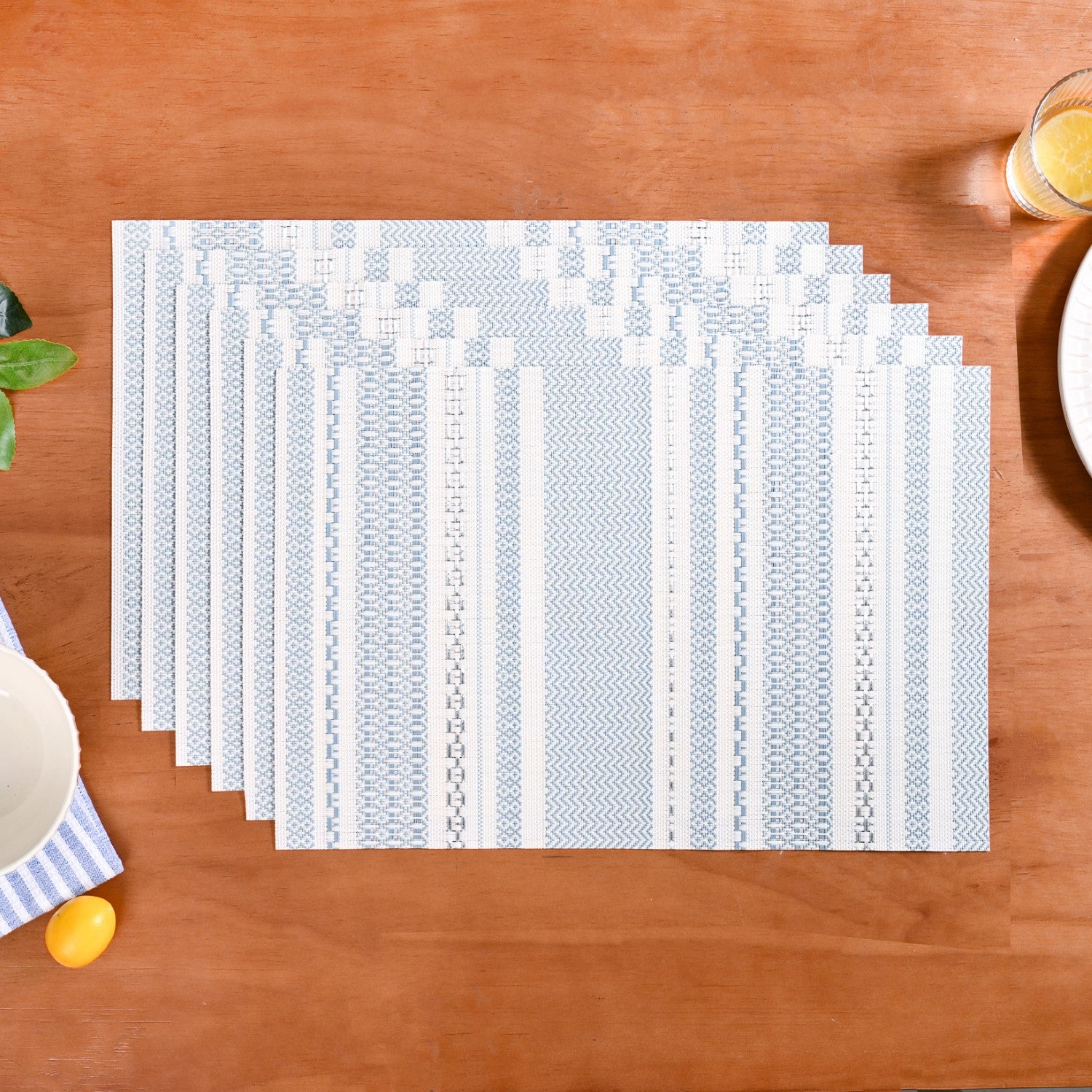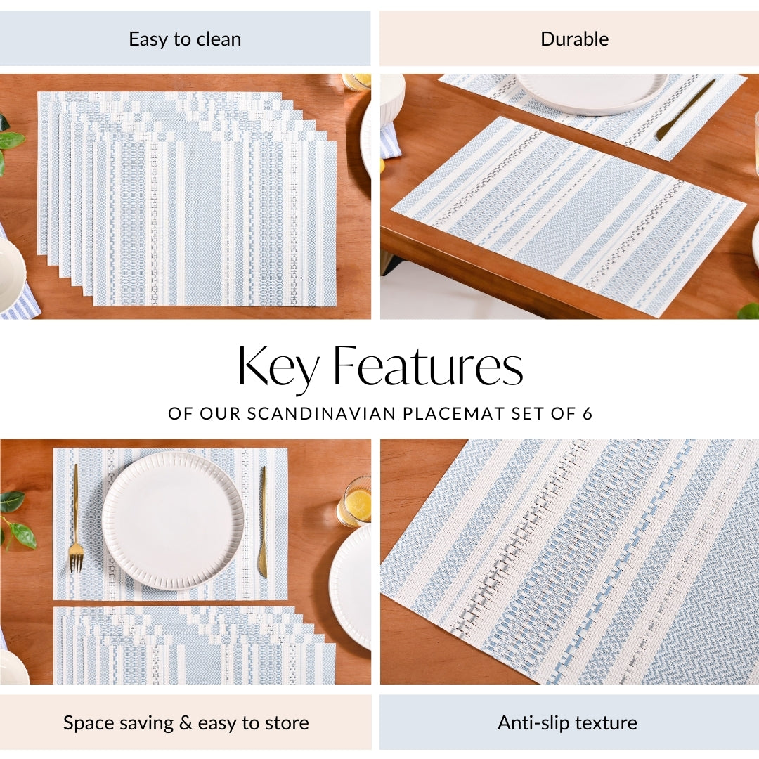Design: The set features modern geometric patterns in a stylish, minimalist colour palette. Made from high-quality PVC, these placemats are durable, easy to clean, and ideal for daily use. Each placemat is designed with a textured surface that prevents slipping, ensuring your dining table is always neat. The reversible design adds versatility, allowing you to switch up the look of your table effortlessly. This set of six provides ample coverage for your dining table, while also saving space and being easy to store.