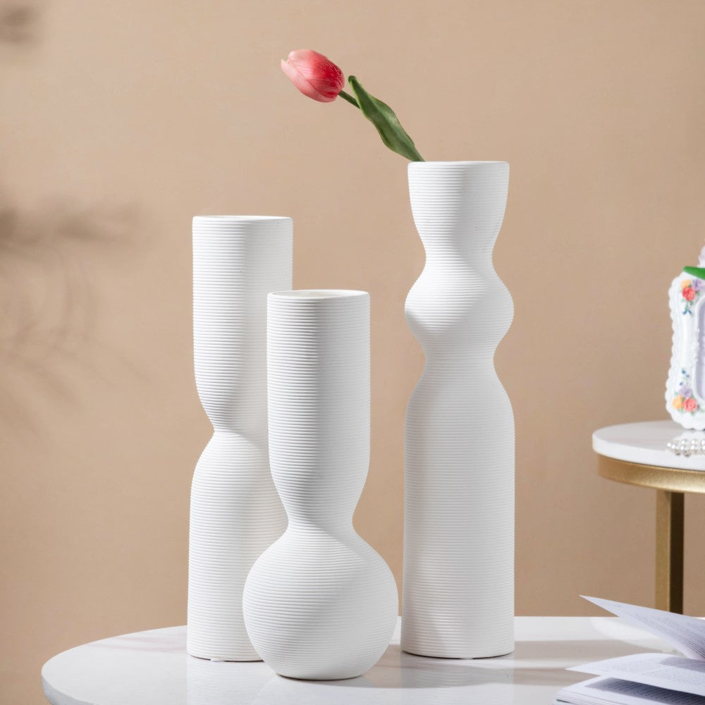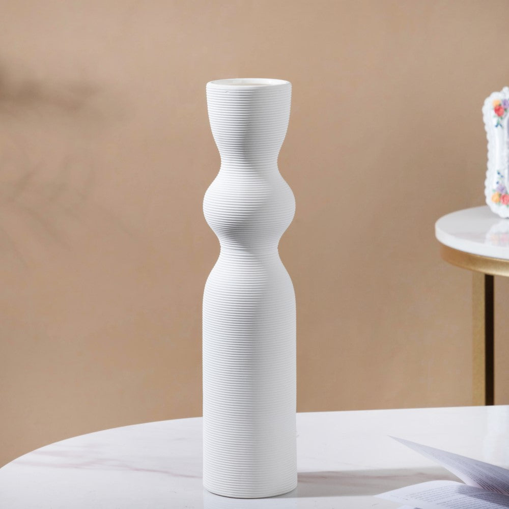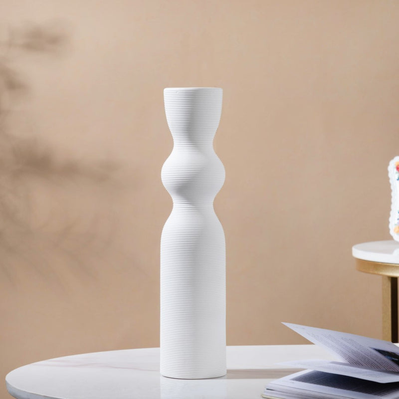 The tall vase can be the center of attraction for your home decor due to its modern and elegant design. The white vase will add a contemporary touch to your living room, bedroom, kitchen, or dining room. The ceramic vase can be a versatile decoration piece with or without flowers. The decorative vase can be filled with artificial or real flowers and can be placed on the center table, fireplace, side tables, cabinets, and at any corner of the house that you want to decorate.