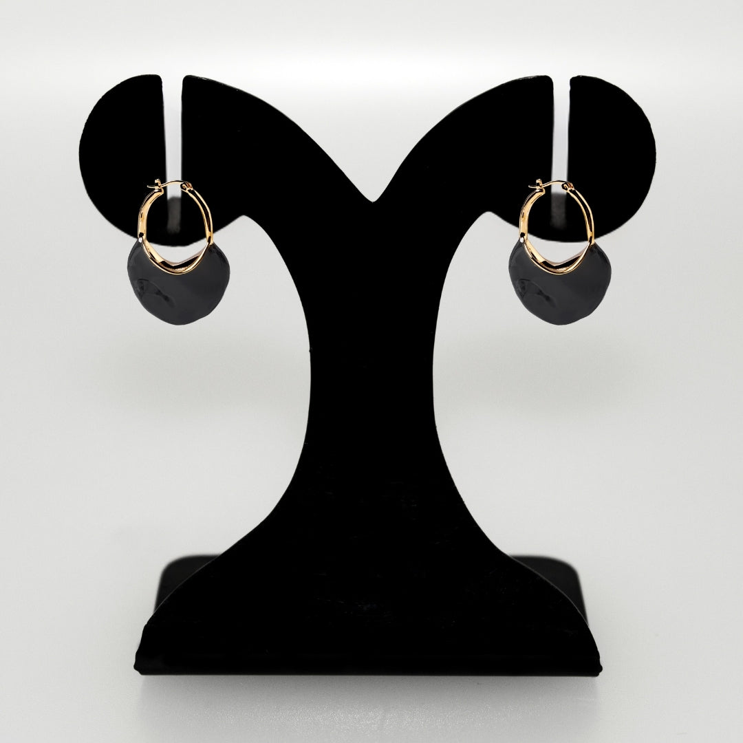 Make a statement with these minimalist hoop earrings, where elegance meets modern design. Inspired by abstract shapes and clean lines, these earrings embody a balance of simplicity and sophistication. Featuring a unique curved design with a striking black stone accent, they add an artistic touch to any ensemble. Perfect for those who appreciate timeless pieces with a contemporary twist.