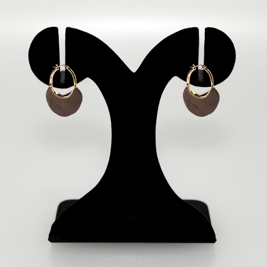 Simplicity takes on a whole new meaning with these oversized, minimalist hoop earrings. Inspired by the allure of abstract design, these hoop earrings exude a quiet sophistication with a touch of natural warmth. The deep brown stone gently curves beneath the hoop, offering an earthy yet refined contrast to the sheer opulence of the gold. It's ideal for those who appreciate understated elegance with a modern flair.