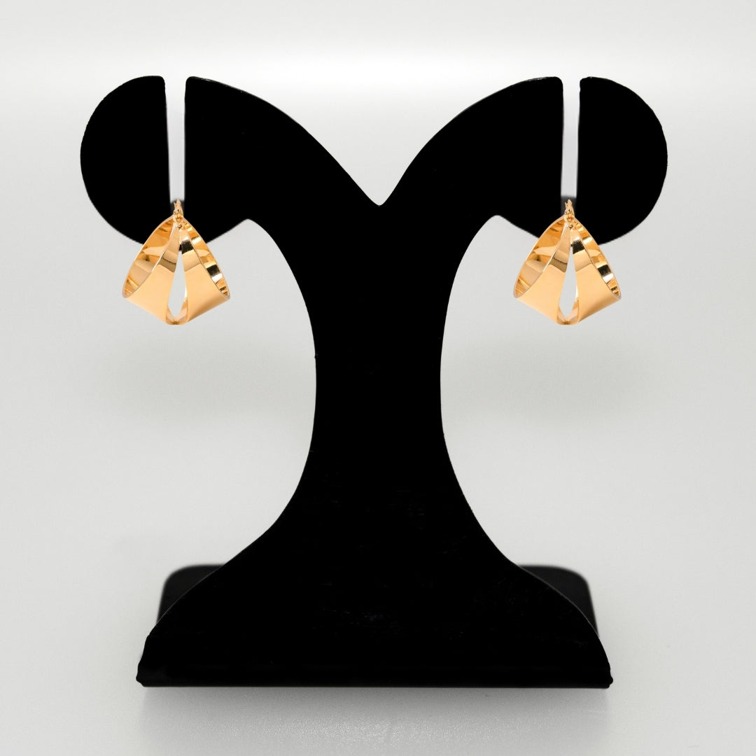 Redefine elegance with the minimalist abstract design of these gold-tone statement hoop earrings. Featuring smooth, flowing lines and a striking silhouette, the earrings effortlessly blend modern aesthetics with timeless charm. Inspired by the fluidity of natural shapes and contemporary art, they are crafted to add a sophisticated edge to your outfit, whether formal or casual. The lightweight construction ensures all-day comfort without compromising style. Perfect for accessorising a sleek monochrome look or enhancing bold prints, these hoops are a versatile addition to your jewellery collection.