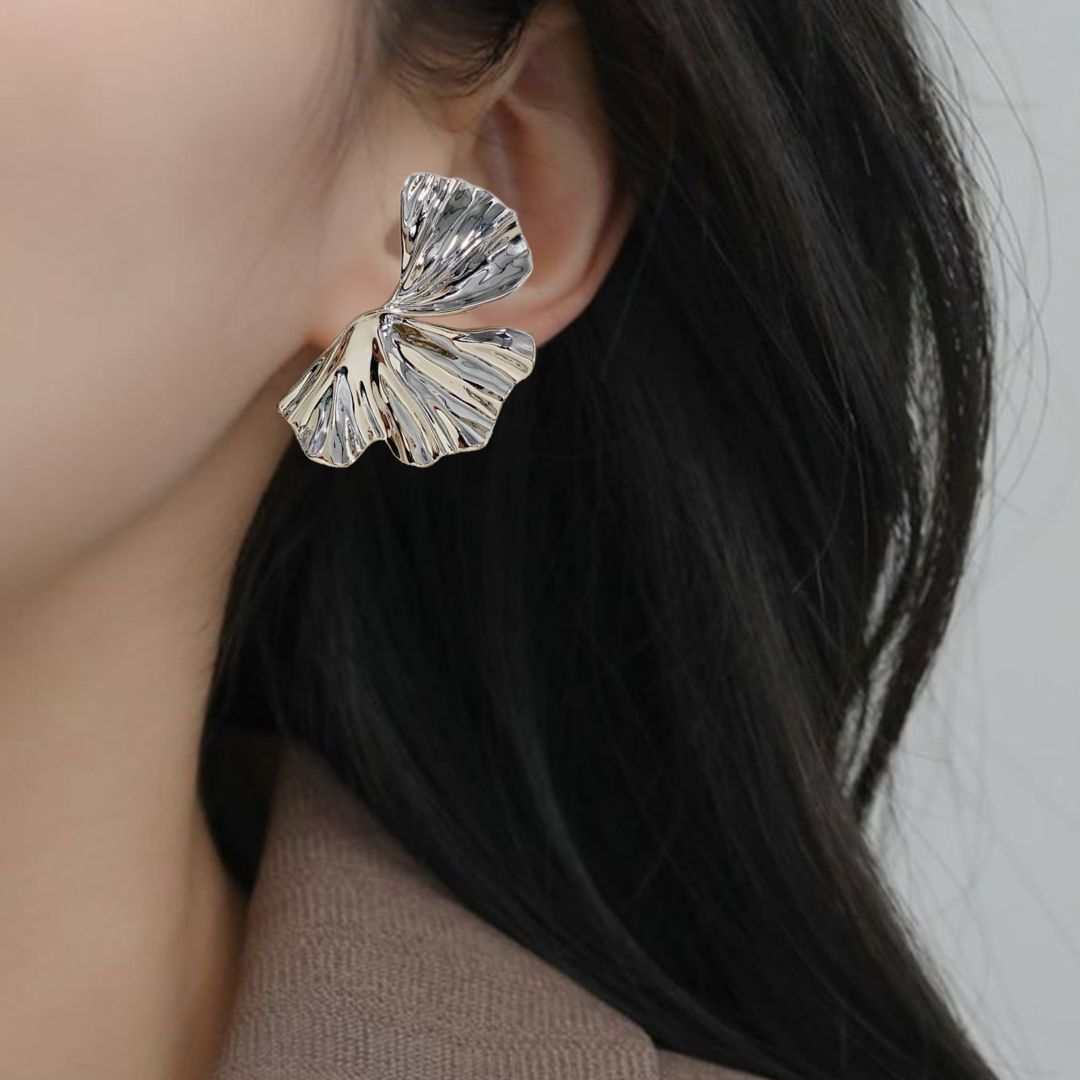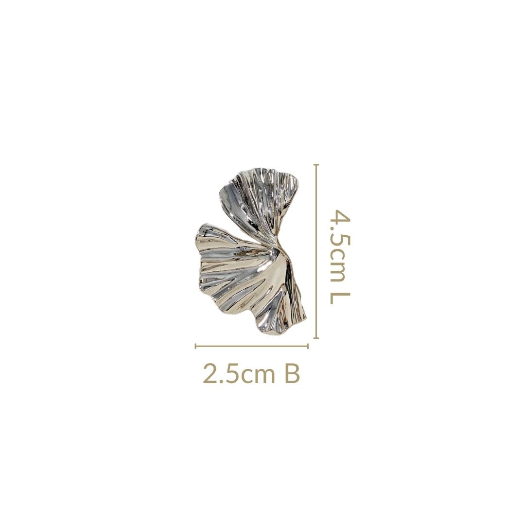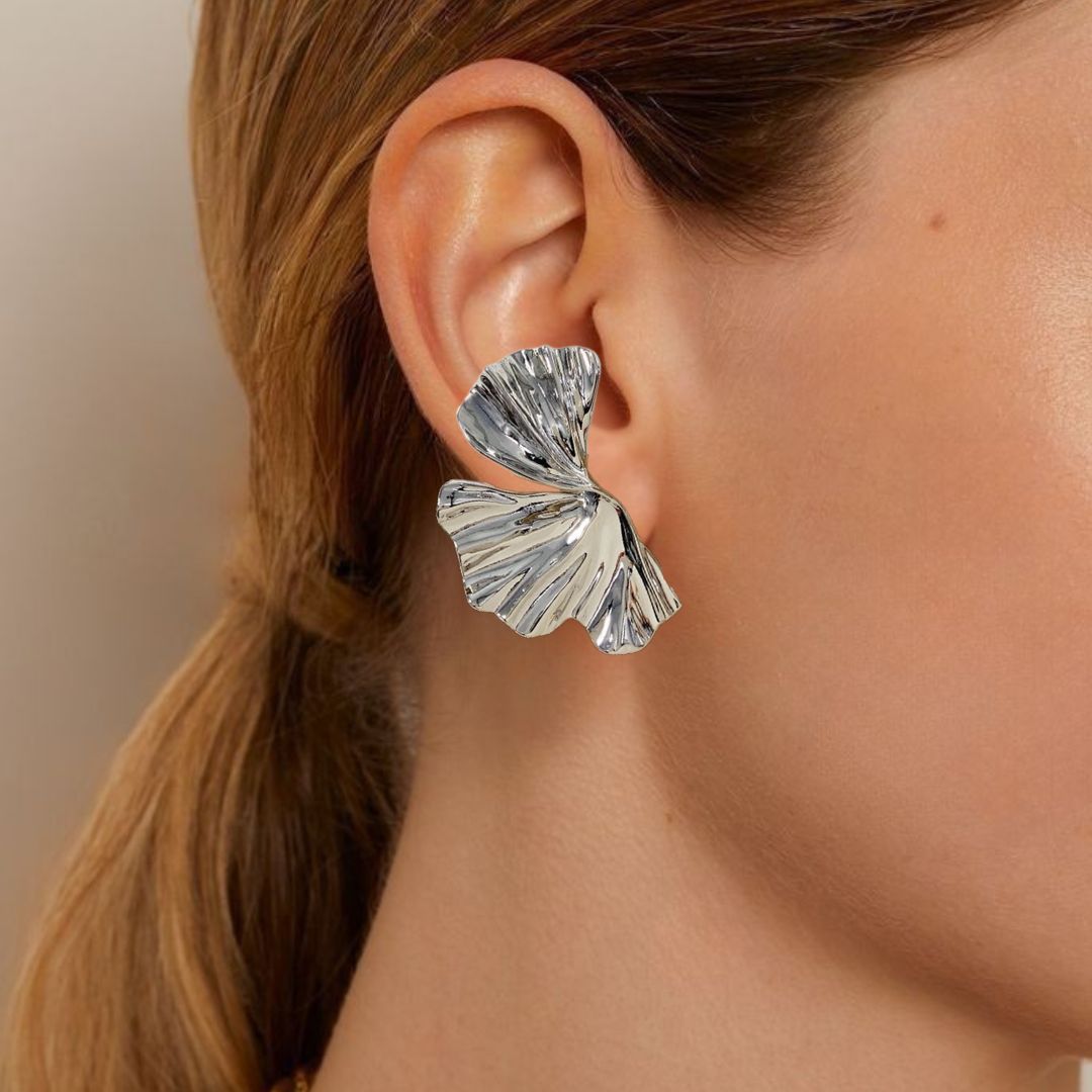 Boasting a bold, sculptural form, these silver-toned statement earrings showcase the striking beauty of a twisted Ginkgo leaf. The three-dimensional design captures the intricate folds and curves of the leaf, creating a dynamic, nature-inspired look. Symbolising resilience and longevity, the Ginkgo leaf serves as the perfect muse for this unique accessory. Whether for a casual outing or a special event, these earrings add an artistic, nature-infused touch to your ensemble, making them an unforgettable statement piece.