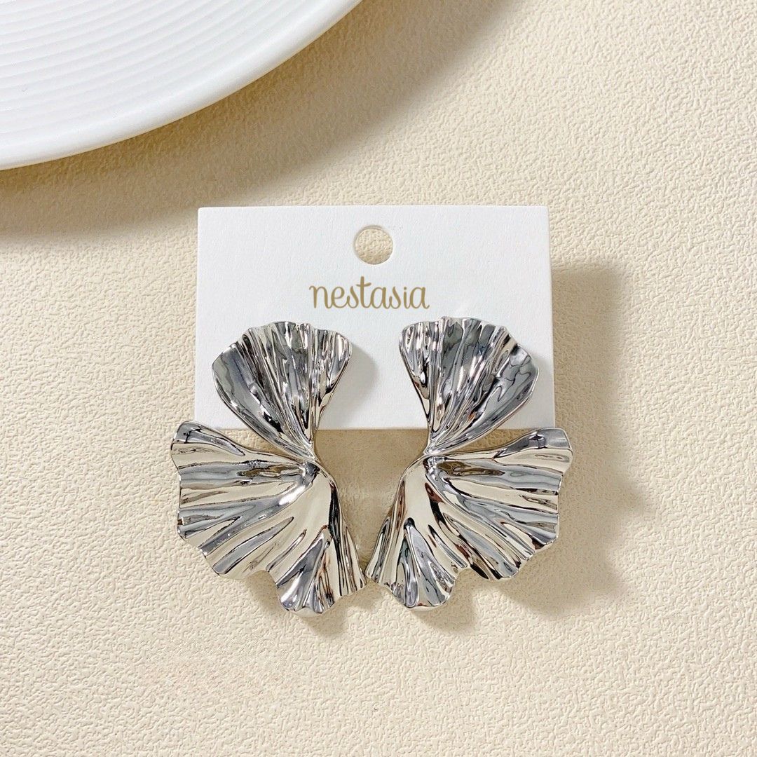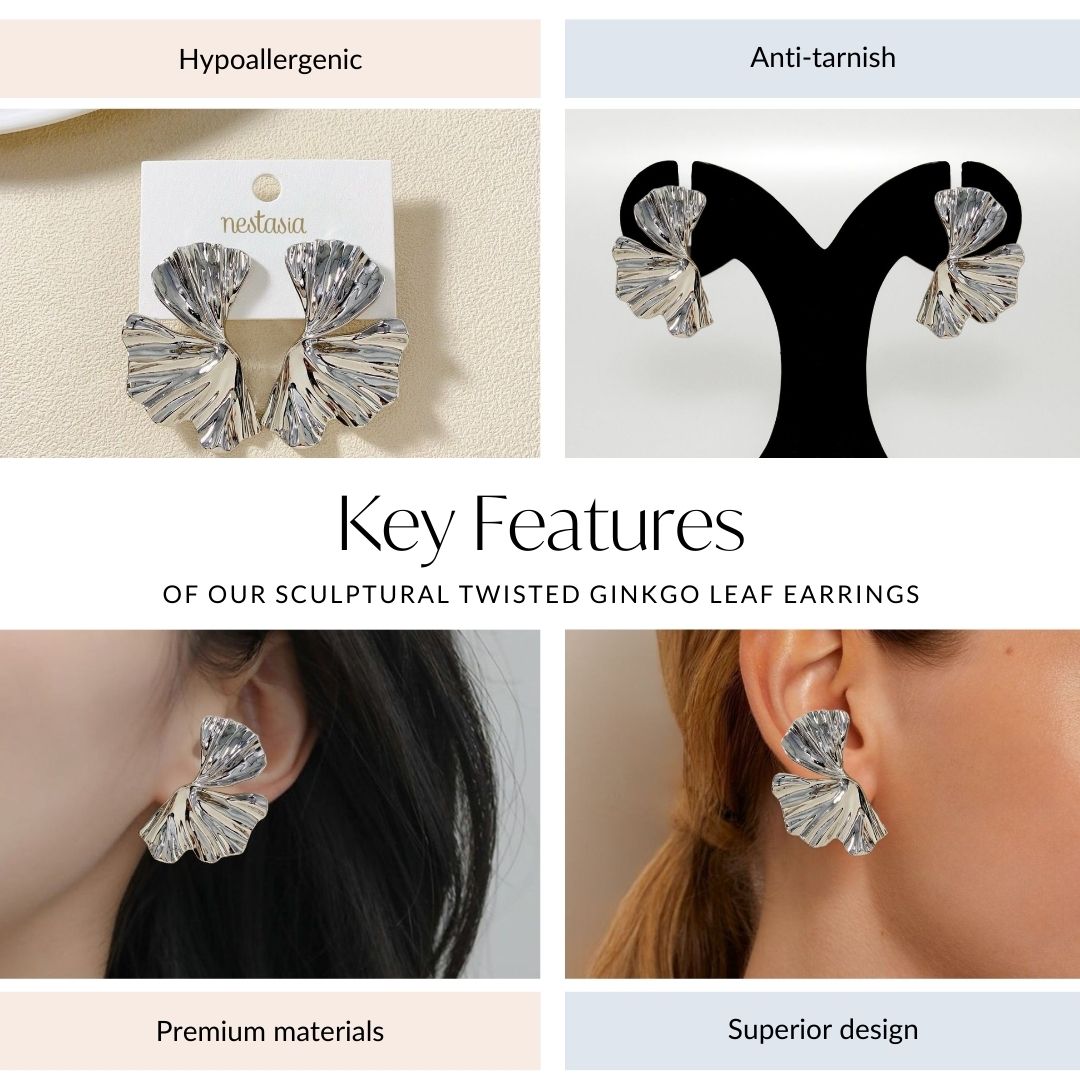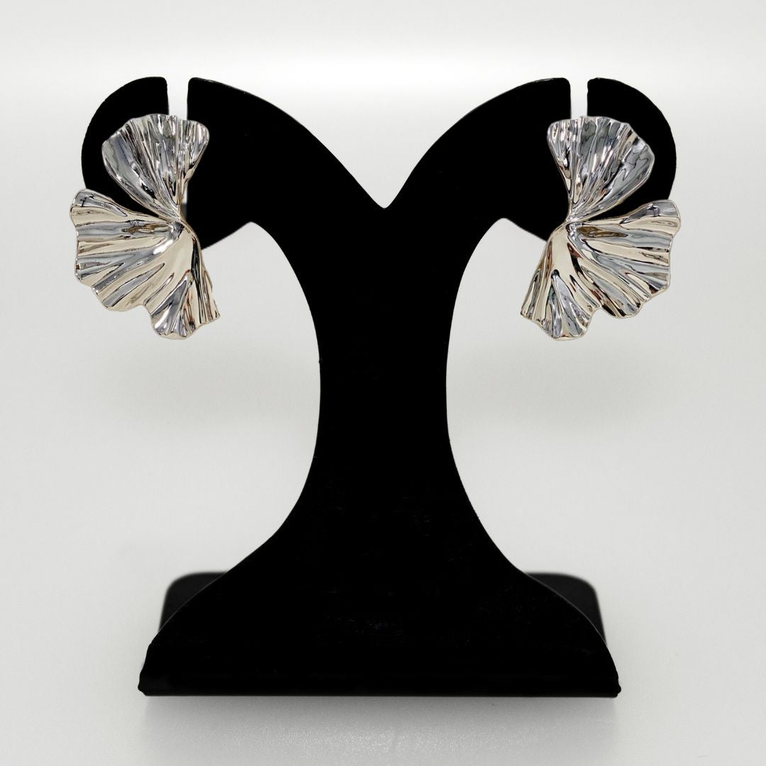 Boasting a bold, sculptural form, these silver-toned statement earrings showcase the striking beauty of a twisted Ginkgo leaf. The three-dimensional design captures the intricate folds and curves of the leaf, creating a dynamic, nature-inspired look. Symbolising resilience and longevity, the Ginkgo leaf serves as the perfect muse for this unique accessory. Whether for a casual outing or a special event, these earrings add an artistic, nature-infused touch to your ensemble, making them an unforgettable statement piece.
