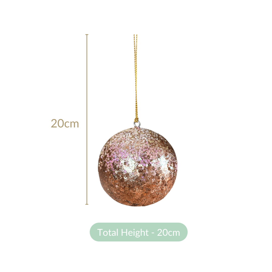 Yes, you can elevate your holiday dining experience by incorporating these baubles as a festive table centrepiece. Their sophisticated design and shimmering sequins add a touch of glamour, creating an elegant focal point for your celebrations.