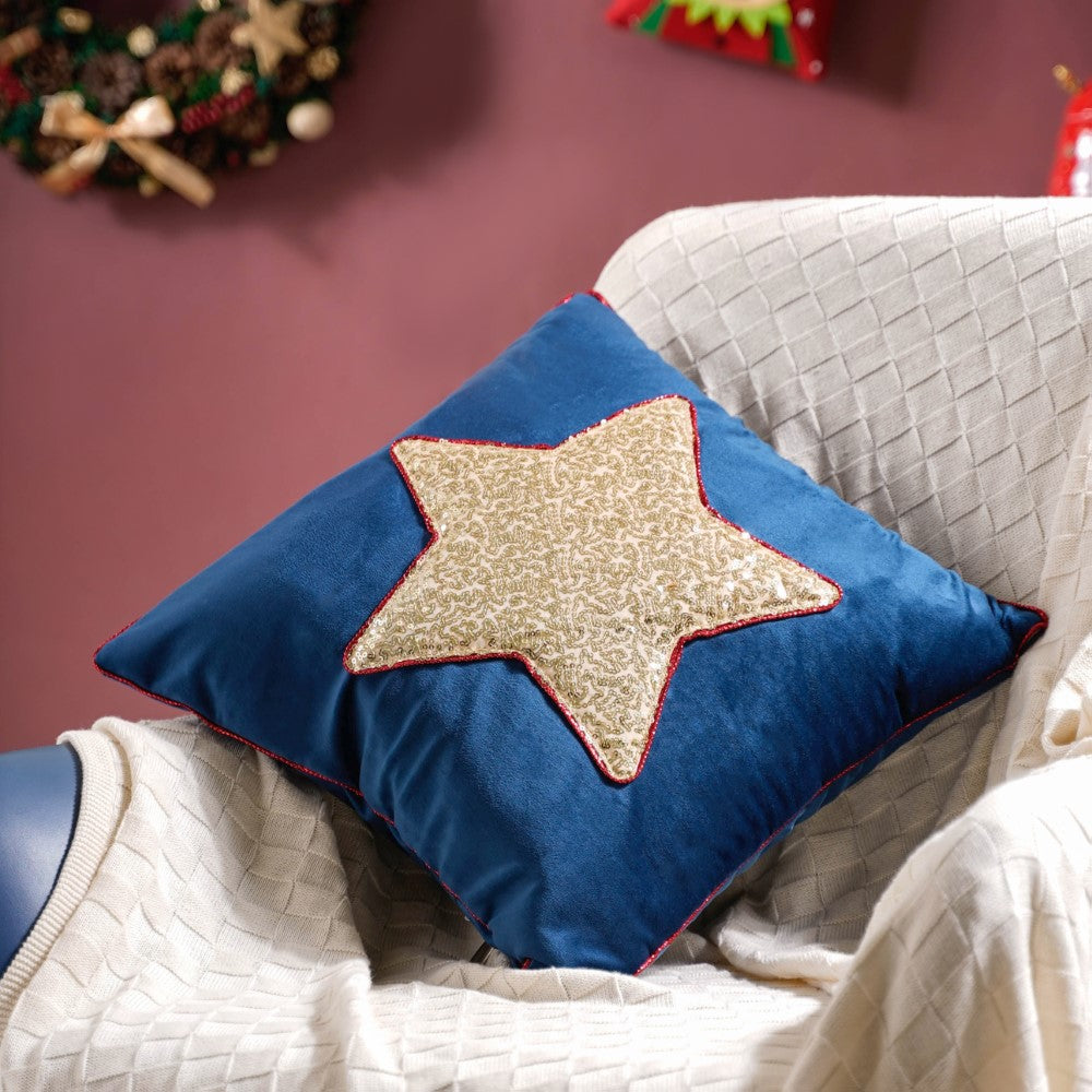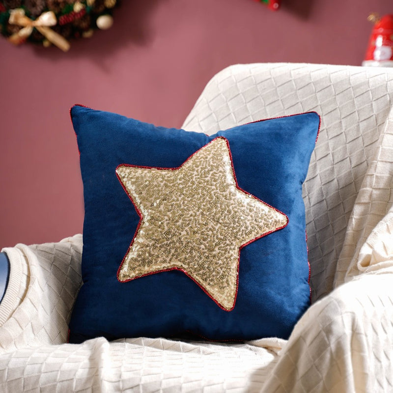 The luxurious Christmas sequin star cushion cover will be the "star" of your home decor this holiday season. The velvet cushion cover with beautiful sequins and handmade lace work will transform your simple home decor into a dazzling one. The star motif in soft velvet fabric creates a striking, textured design. Our sofa cushion cover can be used for placing them on the couches, beds, and armchairs. The Christmas cushion cover can be an excellent Christmas gift for friends and family.