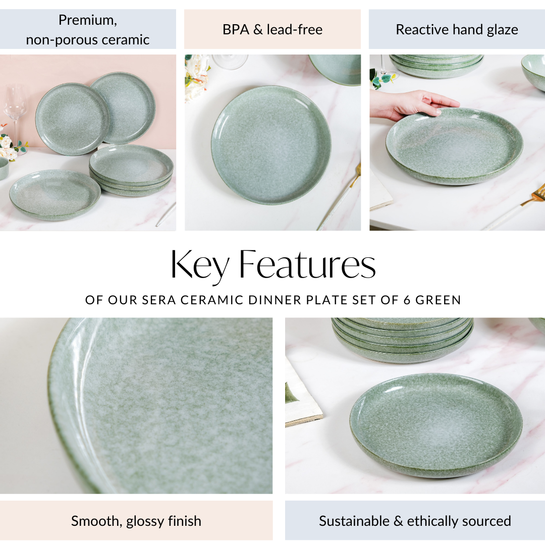 Sera Ceramic Dinner Plate Set Of 6 Sage Green 10 Inch