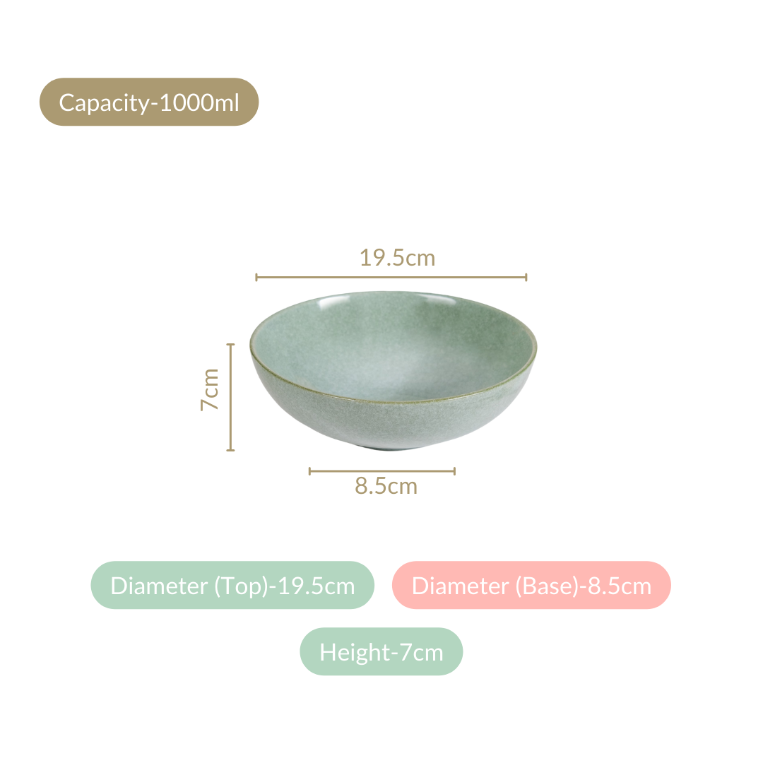 Design: Each handcrafted serving bowl features a classic round shape and a stunning green colour that’s sure to catch the eye. The gentle depth of the serving dish, combined with its sleek, smooth edges, offers a comfortable grip, making it easy to carry these serving dishes to your table.