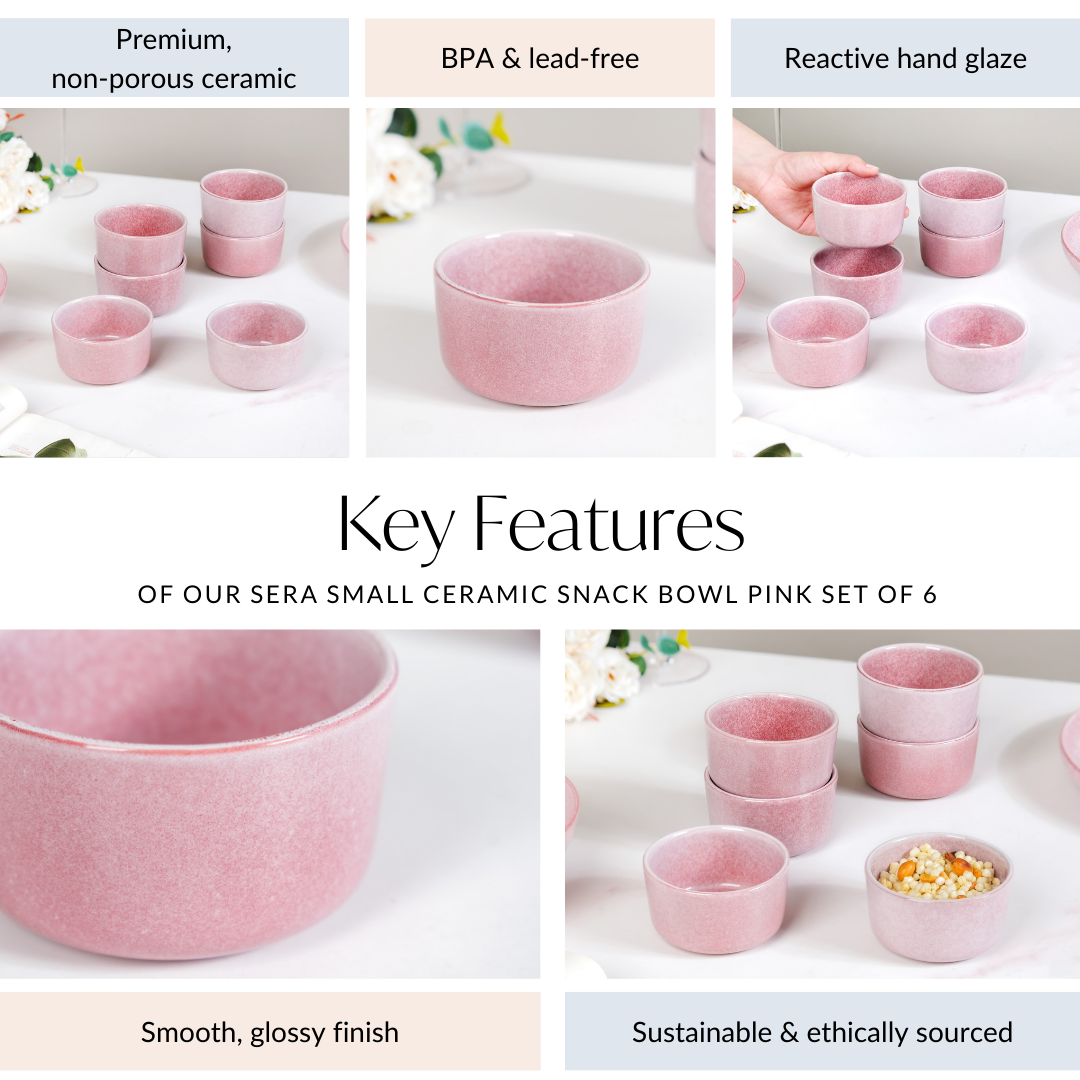 Sera Ceramic Small Bowl Pink Set Of 6 200ml