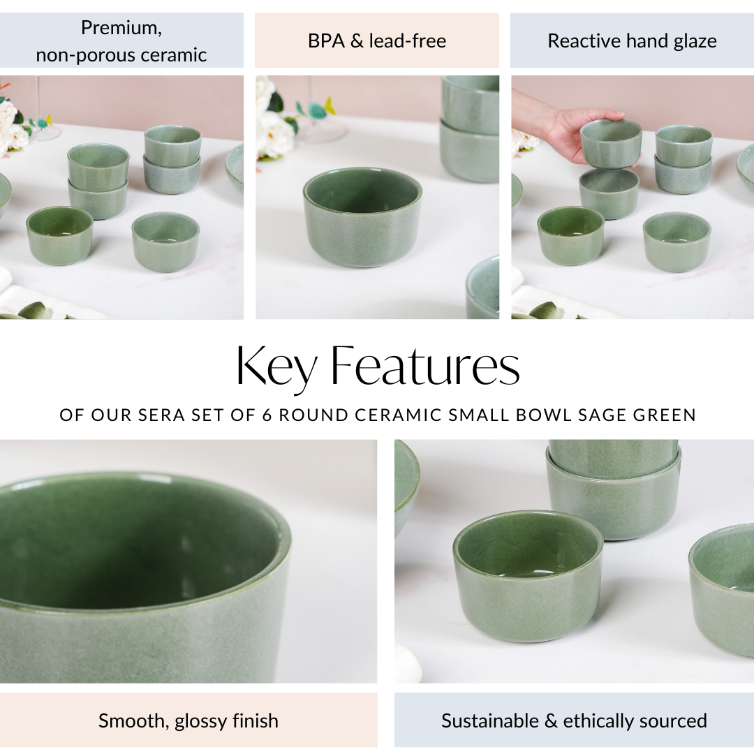 Sera Set Of 6 Round Ceramic Small Bowl Sage Green 200ml