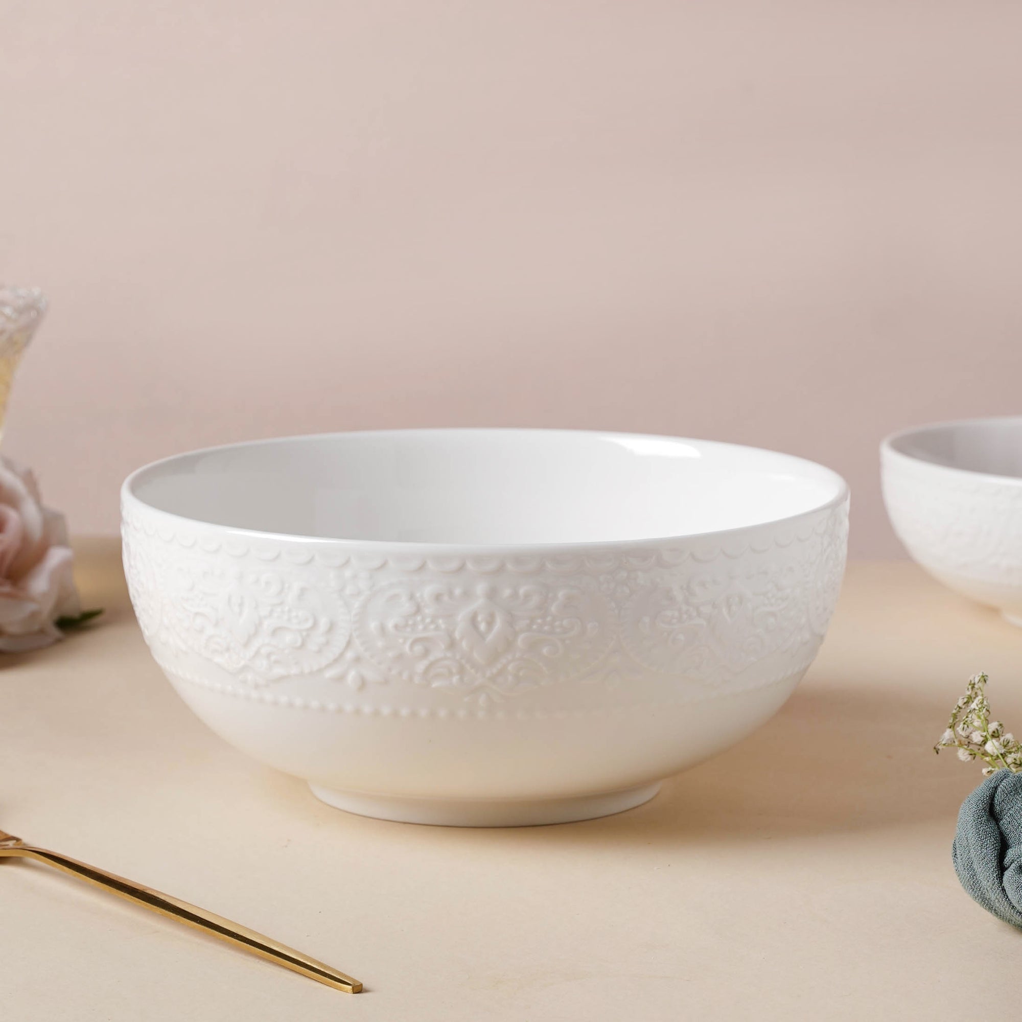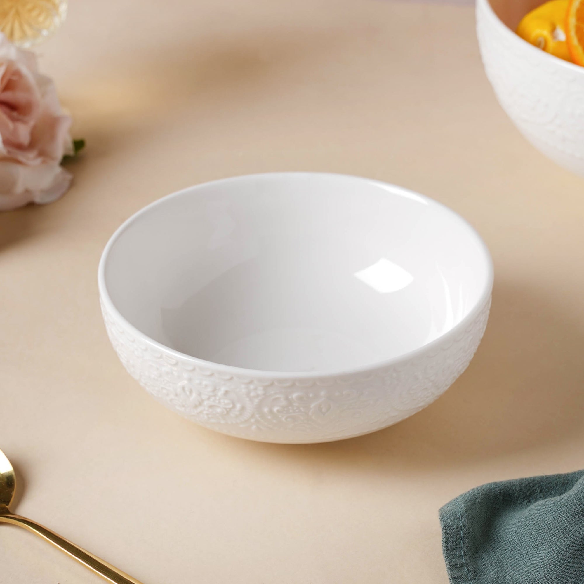 The essence of white has always been a matter of awe and surprise to most of us due to its enormity and the power to be morphed by light and that which is evolving, such as the sky, the clouds, the sun, and the moon. The white is classic, the white is vintage. Be it any era, any style, the wheel of time will always bring you white. The versatile white Serena dinner set allows you to play with the themes of color pop and simple, minimalist decor. The dinner set consists of 6 dinner plates, 6 snack plates, 6 dip bowls, 1 large serving bowl, 2 small serving bowls, and 1 oval platter- perfect company for a family time dinner.