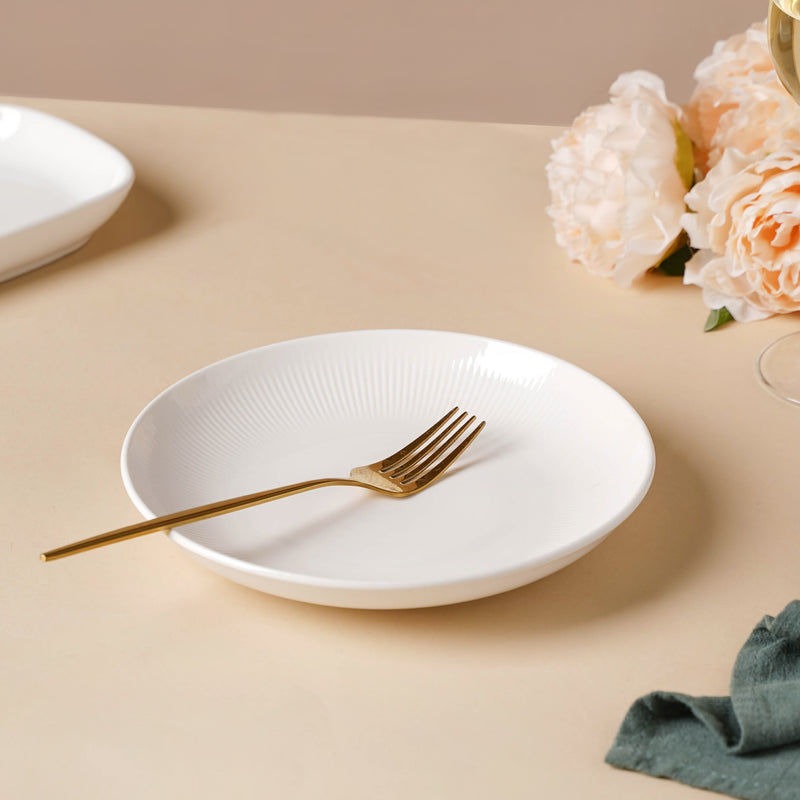 The ceramic snack plate has a sophisticated appearance and may be used to serve starters and snacks at evening tea parties or during luncheons and soirees. The snack plate's white monotone colour adds refinement to any table arrangement. The plate is dishwasher friendly and is safe to be put into the microwave. Nestip: The snack plate can be paired up with a white-colored tea cup when tea is served with crispy snacks. Size: 21cm D x 3cm H Color: White Material: Ceramic Products included: 1 plate Style: MUYU99T83