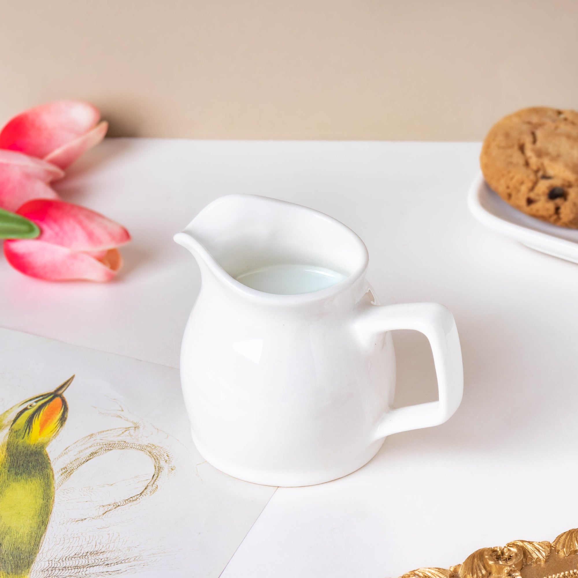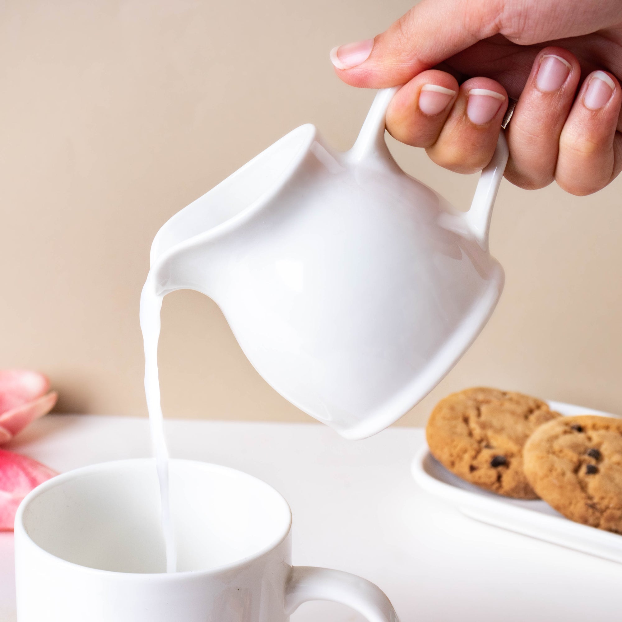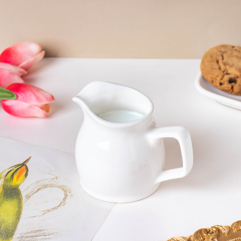 The elegant milk pot is a must-have to complete an elaborate tea set. The stark white pot has been manufactured with premium ceramic, with a smooth finish. The ceramicware is ideal for making the ultimate high tea at home. The curved design gives the product a modern minimalist appearance. The milk jug stands out due to its simplistic white color, and its one-of-a-kind design. Nestip: The milk pot may be used as a vase to place small-stemmed faux flowers. Size: 7.5cm L x 8cm H With handle - 10cm L Capacity: 200ml Color: White Material: Ceramic Products included: 1 milk pot Style: MUYU99T54
