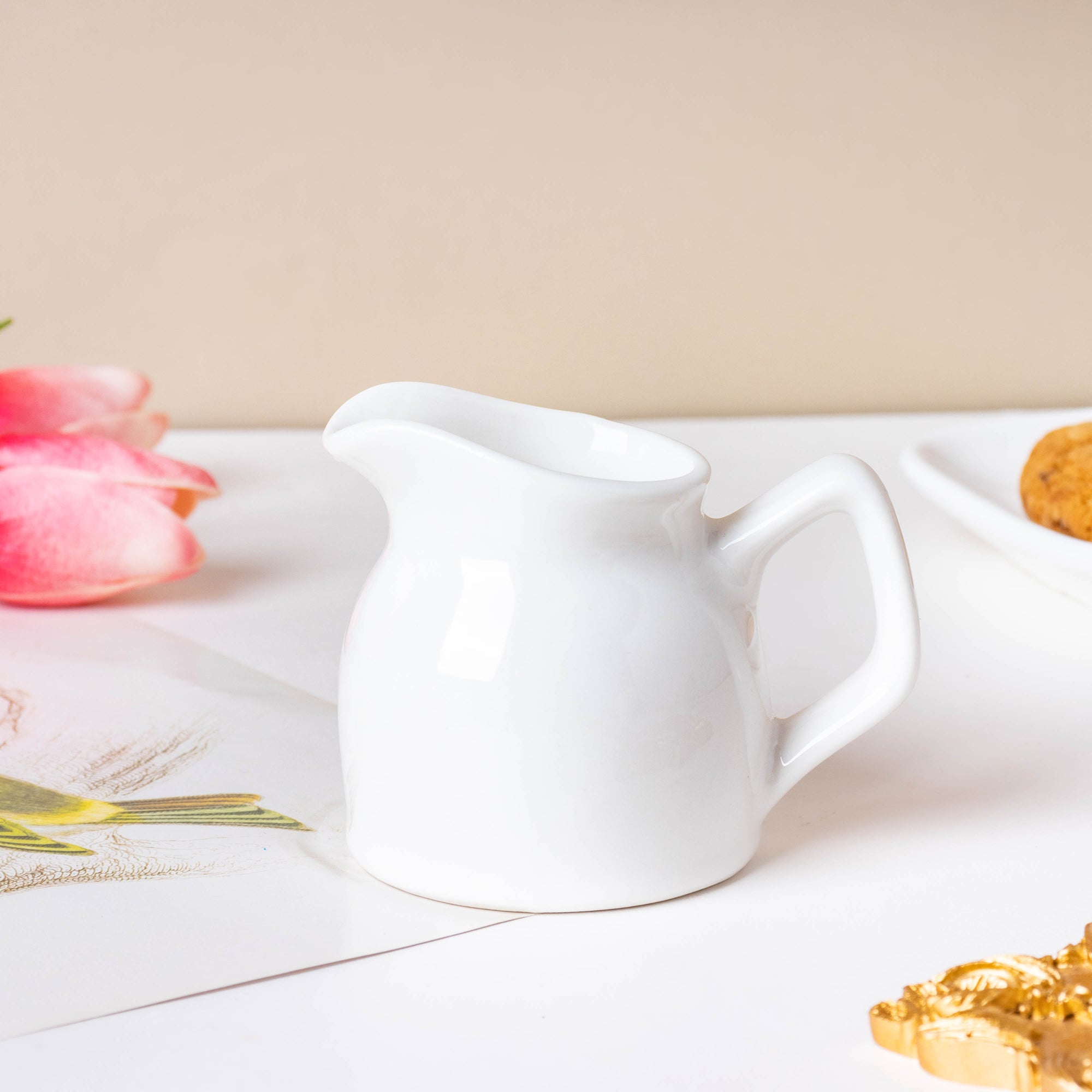 The white ceramic milk pot has a distinctive rim that enables one to pour milk into the beverage with ease. The elegantly shaped rim has an extended mouth that ensures that there is no spillage. The white milk pot can make for an ideal setting when paired with the white teapot and cup and saucer set from Nestasia's collection.