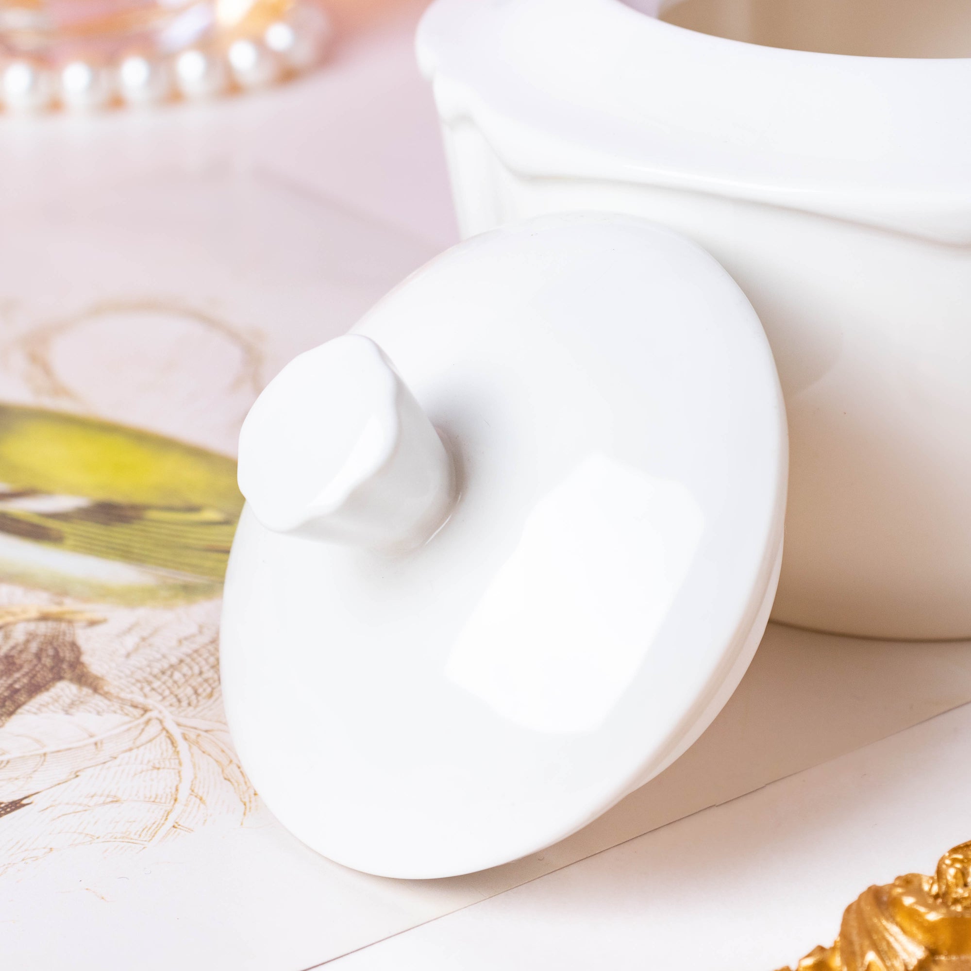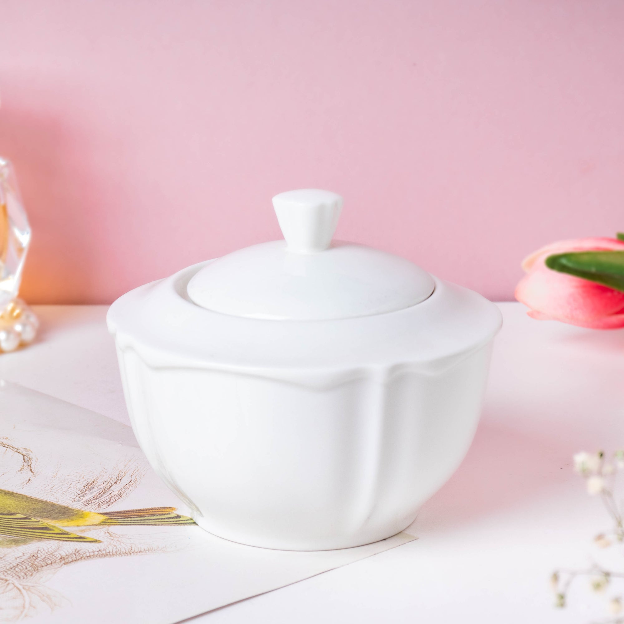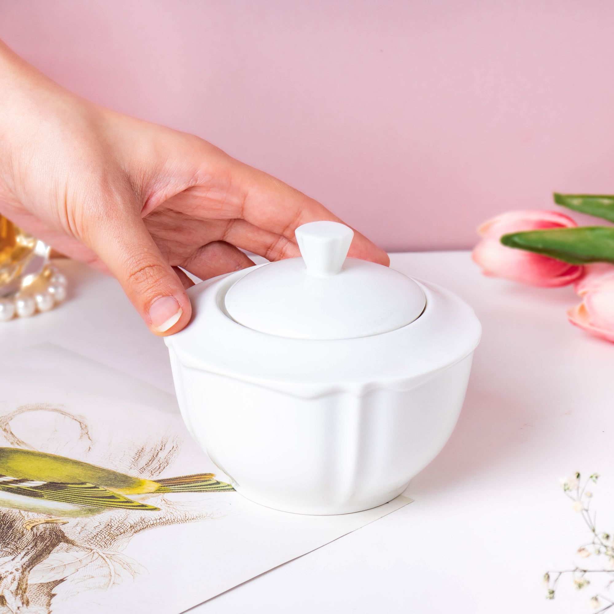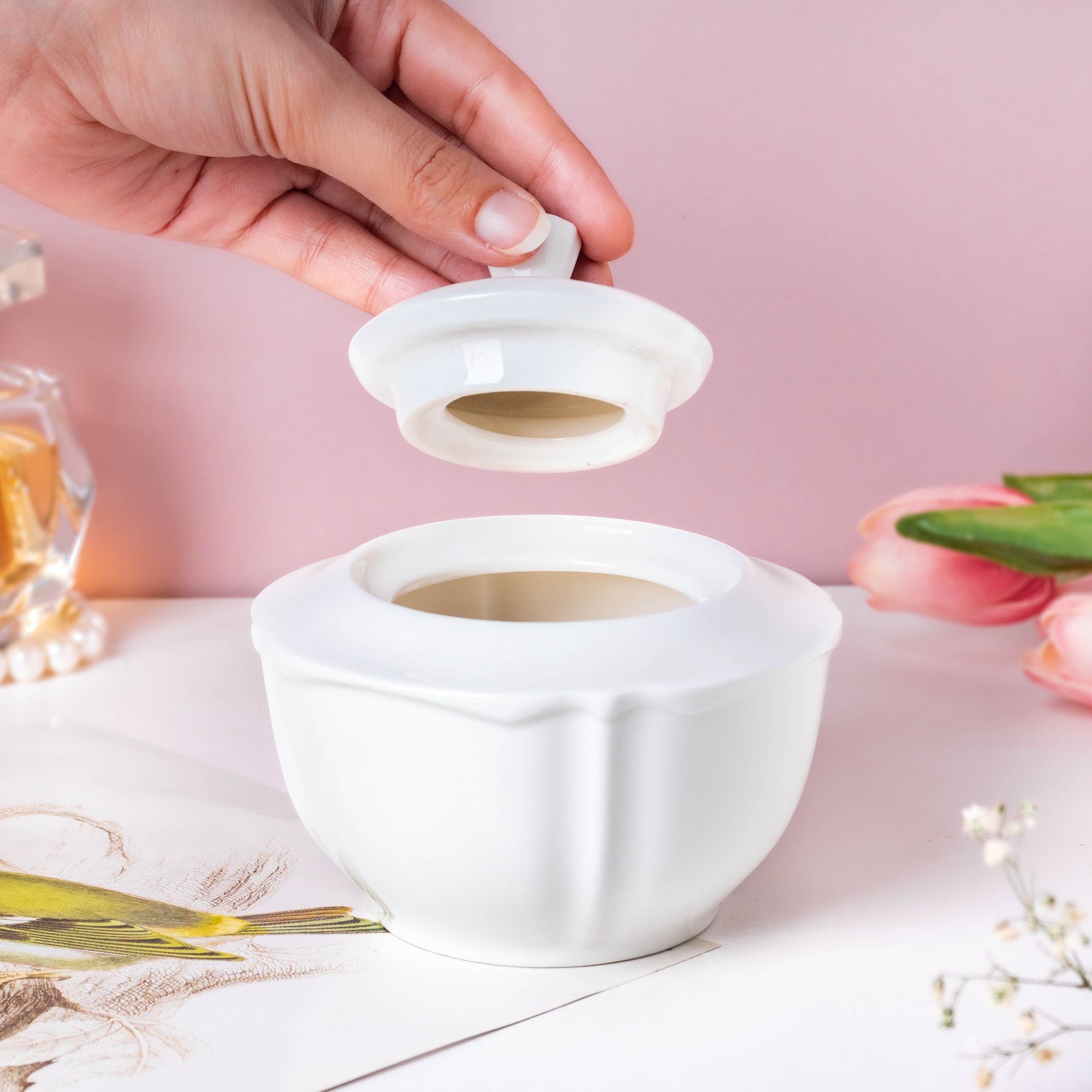 Store and keep sugar within an arm's reach while presenting tea to guests. The sugar pot comes with a lid, keeping the components in it fresh to use as one sips tea or coffee with leisure. The classic pot is a charismatic white in colour which adds a classic vibe to the evening tea-time table setting. Nestip: The jar with lid may be used to store candies or nuts. Size: 7.5cm D With Lid - 10cm H Capacity: 300ml Color: White Material: Ceramic Products included: 1 sugar pot Style: MUYU99T61