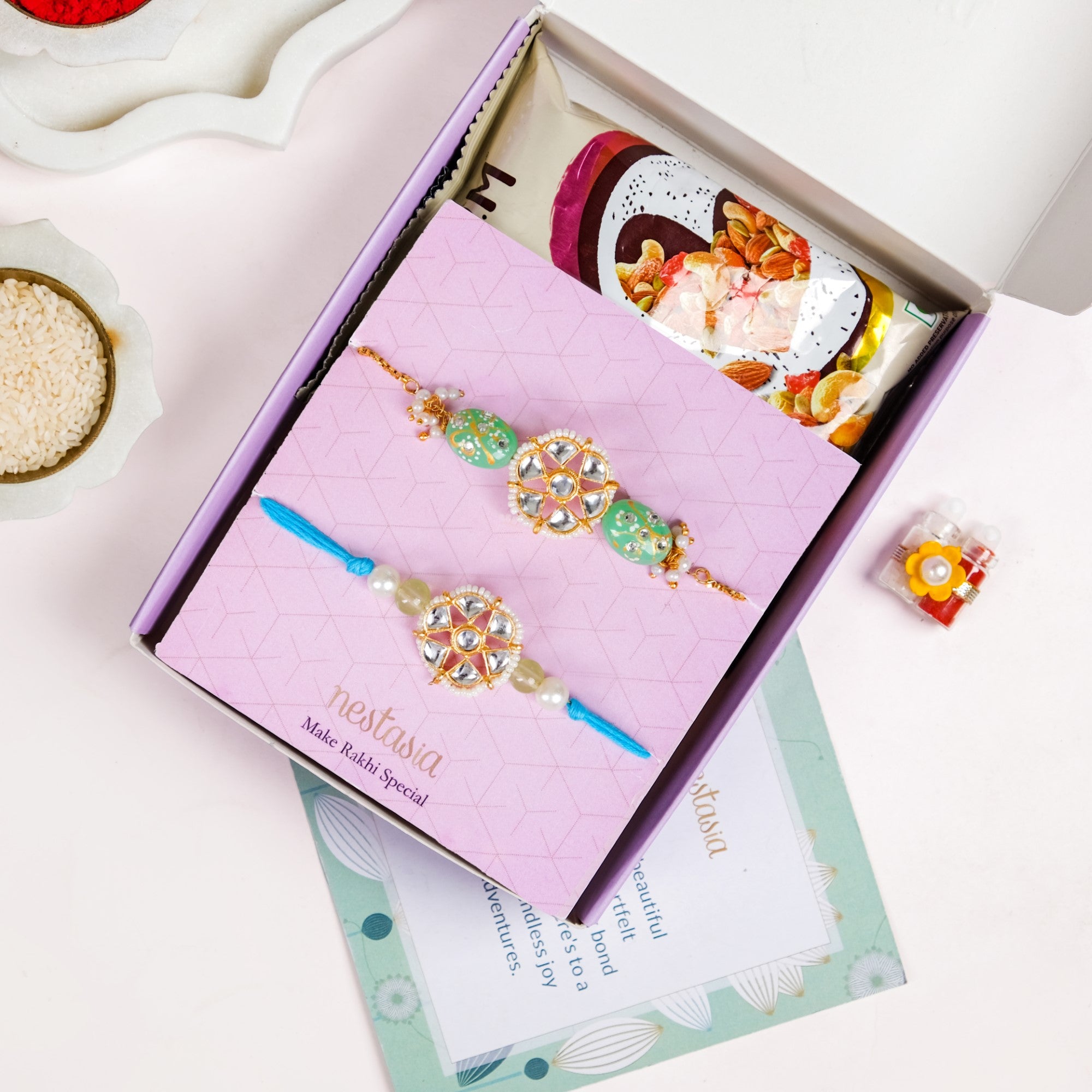 Serene Kundan Blue Rakhi Bracelet Gift Set