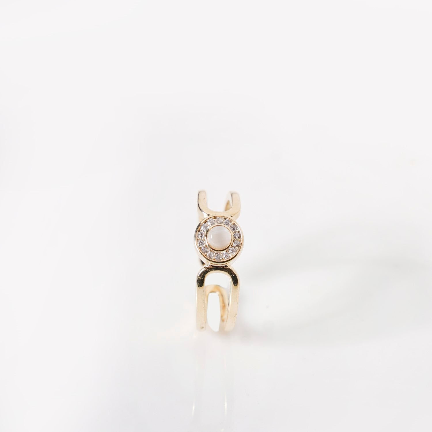 Some rings whisper elegance, while others make a statement—this one does both. With its sleek dual-band design in a rich gold tone, it’s the perfect mix of minimal and eye-catching. At the center sits a beautiful white PVC bead, soft and luminous, framed by a delicate halo of crusted stones that sparkle with every move. Whether you’re dressing up or keeping it casual, this ring adds just the right amount of charm and shimmer to any look.