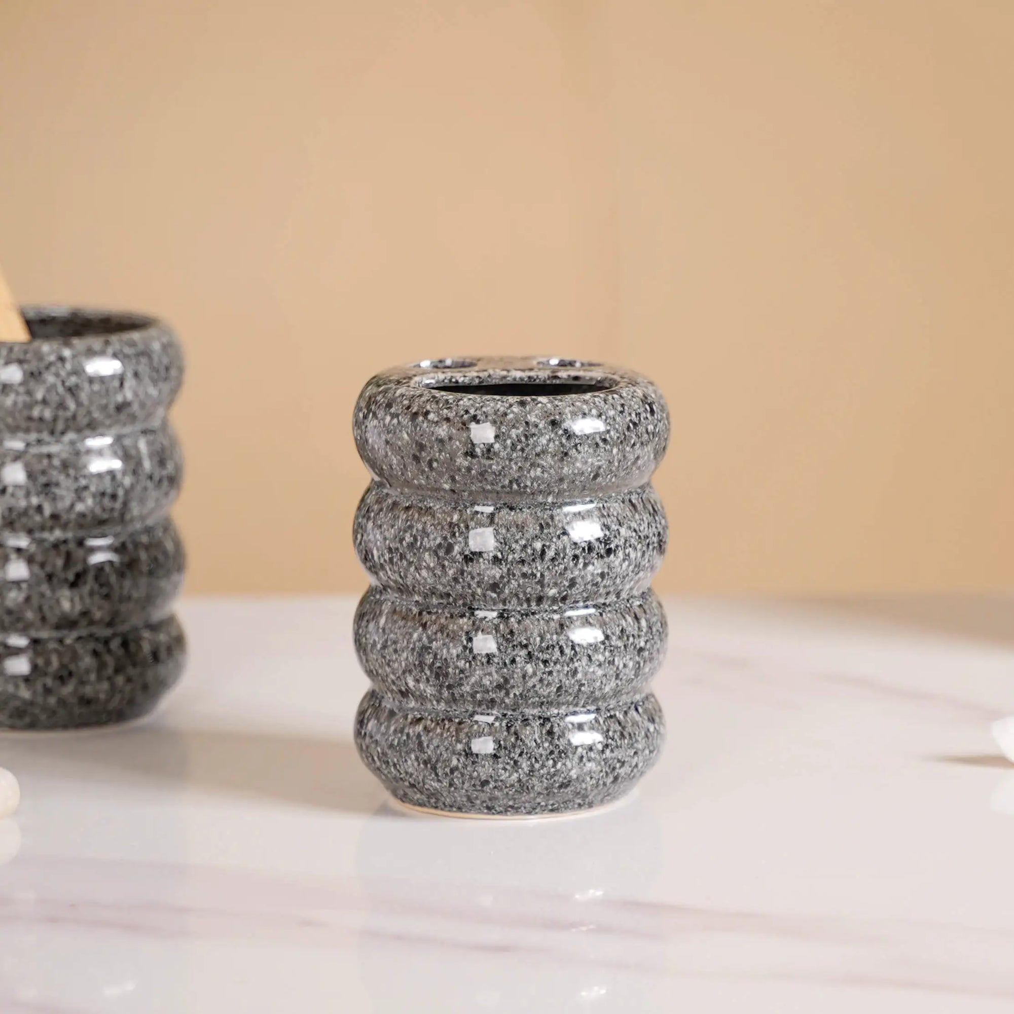 The tiered design of our bathroom accessories set not only adds a stylish aesthetic but also enhances organization. The ceramic tumbler and toothbrush holder are thoughtfully partitioned into three sections each, allowing you to neatly separate and store various items, such as toothbrushes, toothpaste, razors, and more. This design optimizes space and keeps your bathroom clutter-free.