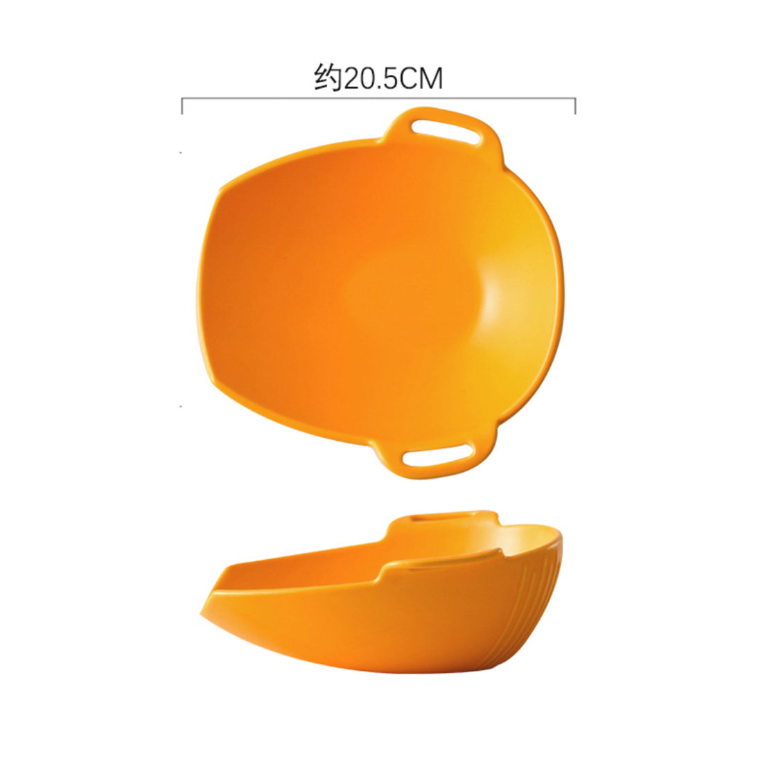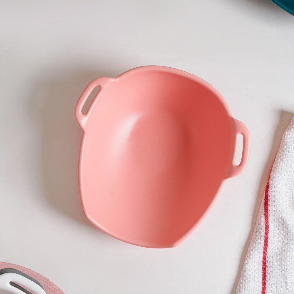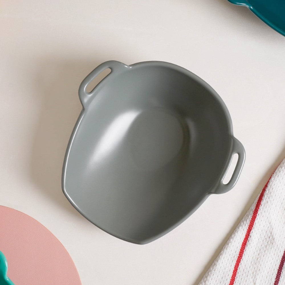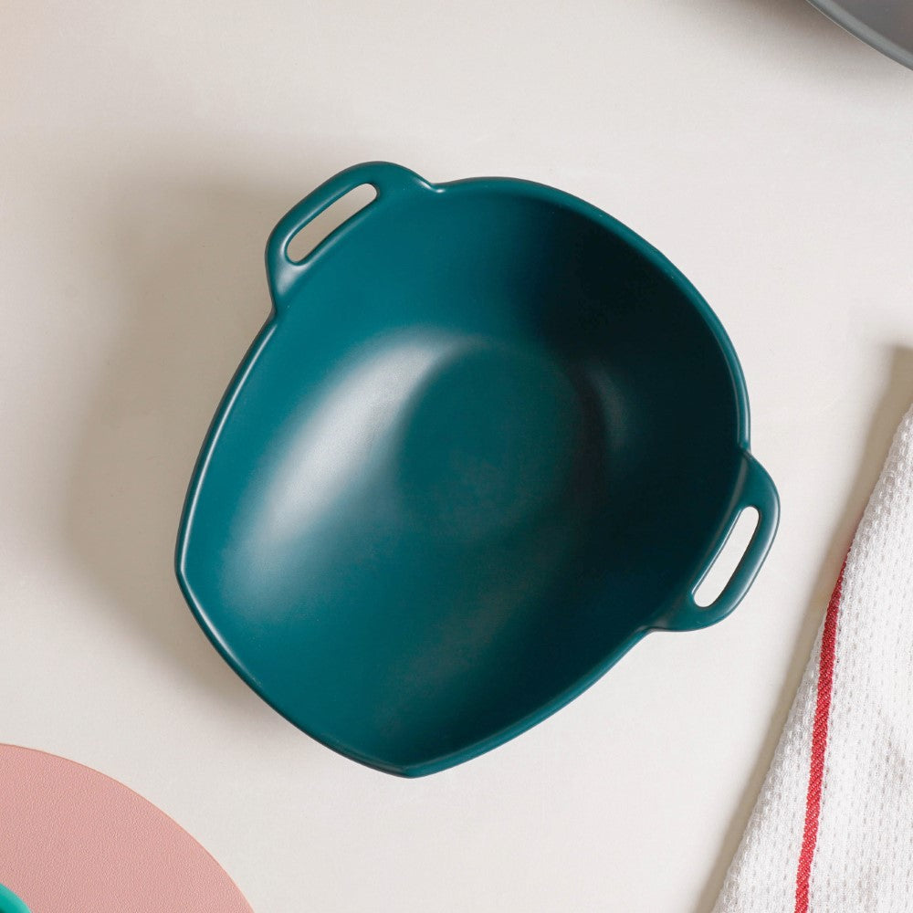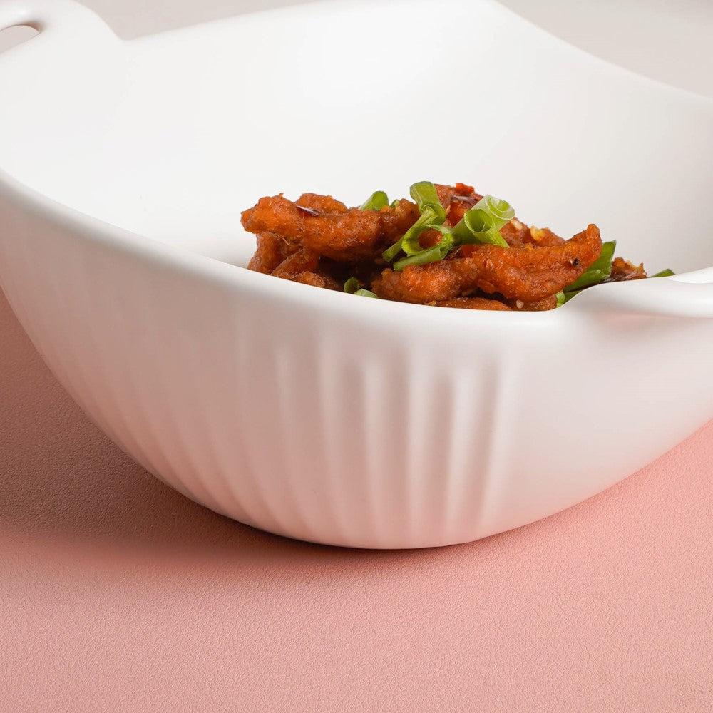 Serving platters with handles in an abstract shape and a variety of colours for an elevated dining experience. The unique shape of the platters make them stand out. They are apt for being used as serving trays for food items like snacks, rice, noodles, and more. The platters can be paired with deep dish plates to create a similar colour tone set. The bowls are oven, microwave and dishwasher safe.