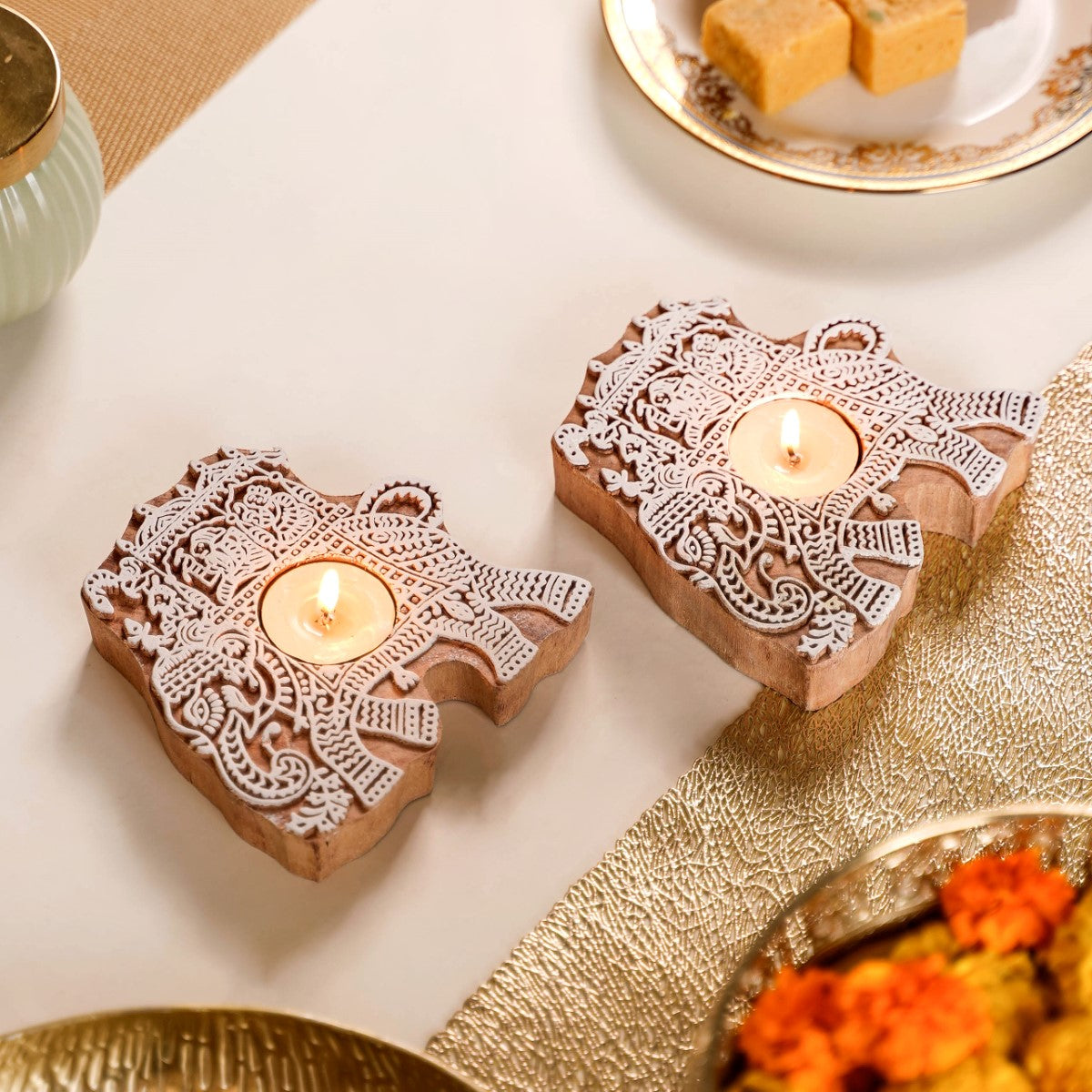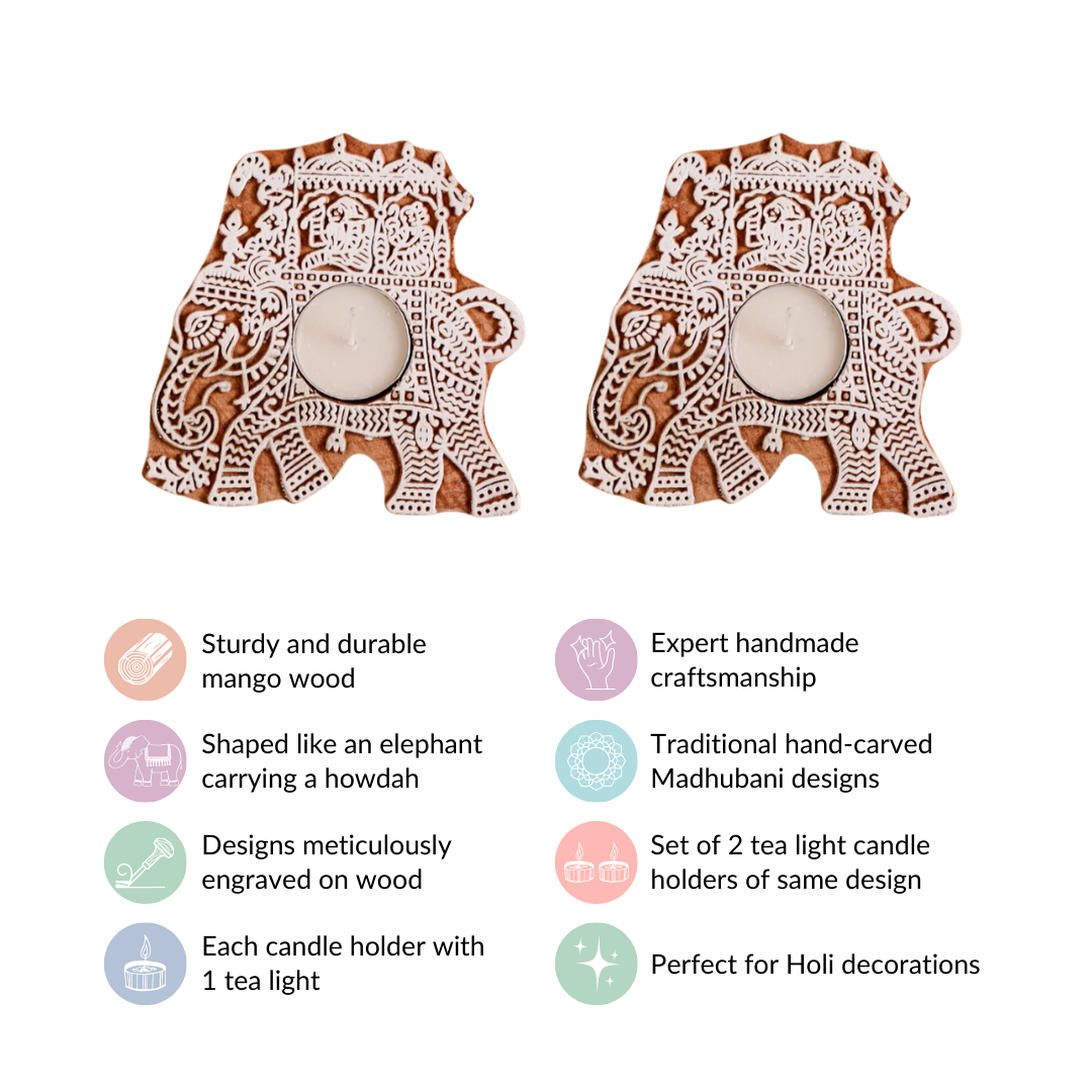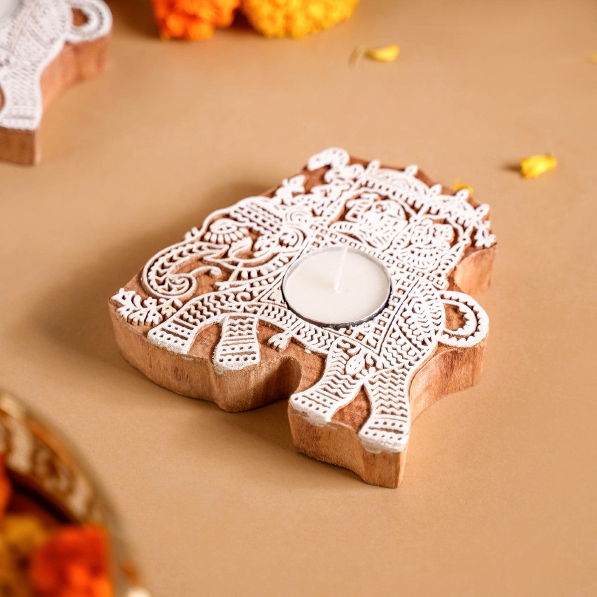 The traditional Madhubani designs, intricately engraved onto the mango wood, lend an authentic and cultural touch to the tea light holders. They elevate the aesthetic appeal, making the candle holders not only functional but also exquisite pieces of art.