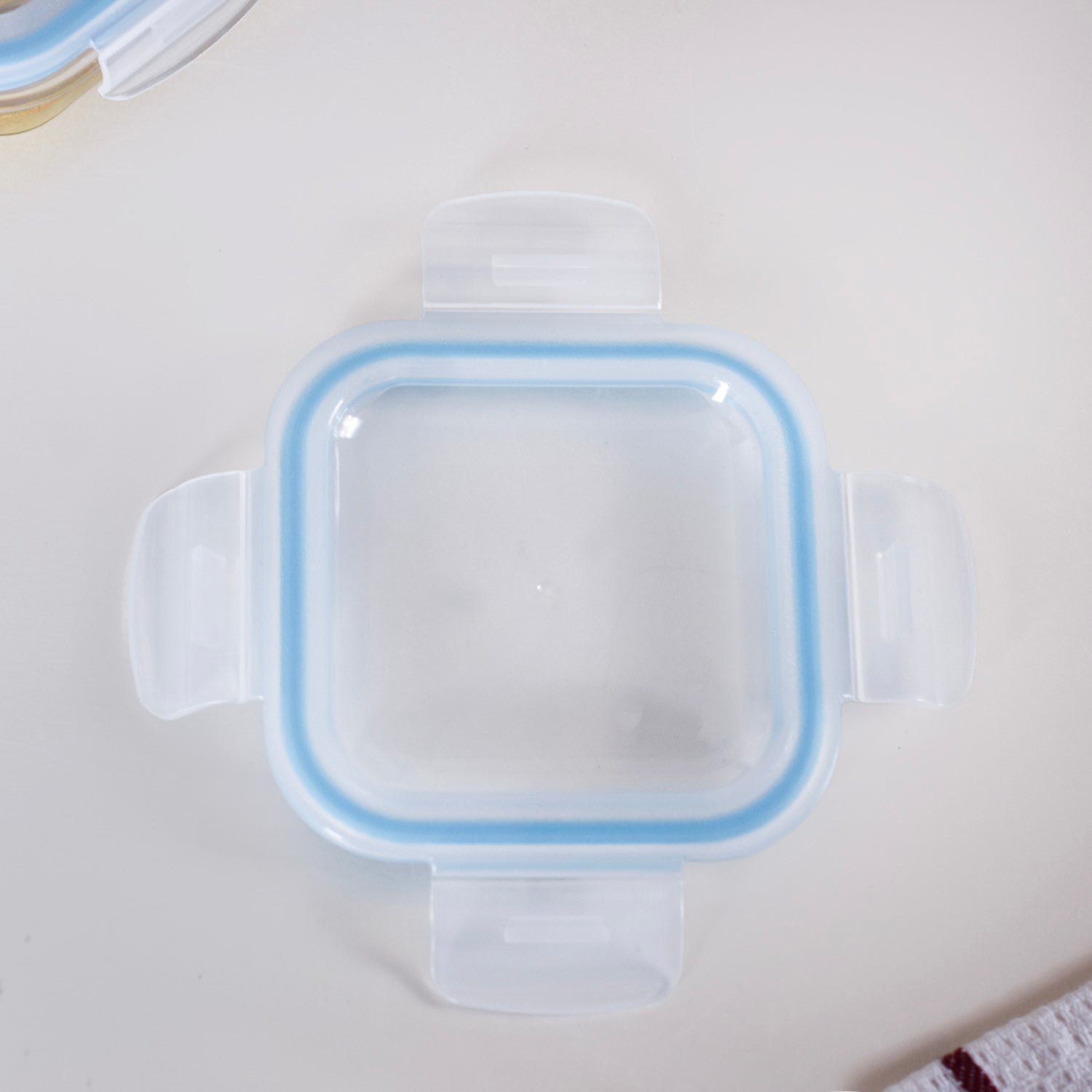 The versatile and stylish set of 2 glass lunch boxes is the ideal option for carrying your meals while on the go. The high borosilicate glass material of the tiffin box set is food-safe and lead-free for a healthy lunchtime experience. The lunch boxes offer leak-proof security, thanks to the airtight top lid, which is fastened with clip locks on all four sides and a silicone gasket. The borosilicate glass tiffin box set enables quick heating of food and is microwave-safe. In addition to adding refinement, the square shape and transparent design also make cleaning simple. This lunch box set is perfect for giving as a gift because it blends functionality, security, and elegance for a great meal experience anywhere.