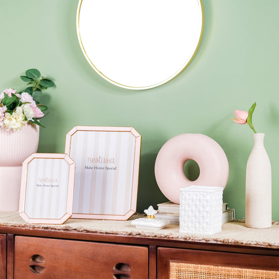 These photo frames feature a unique and eye-catching octagonal shape. This distinctive design sets them apart from traditional rectangular or square frames, adding a touch of creativity and elegance to your photo displays. The octagonal shape adds visual interest and makes these frames an attractive choice for those looking to showcase their photos in a stylish and modern way. Whether you place them on a desk, or shelf, or hang them on the wall, their octagonal shape will draw attention and beautifully frame your cherished memories.
