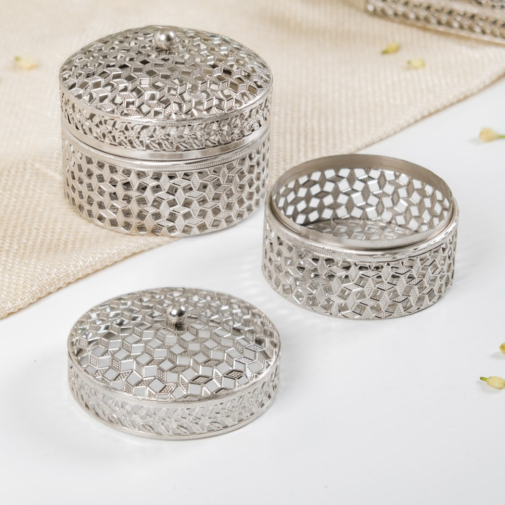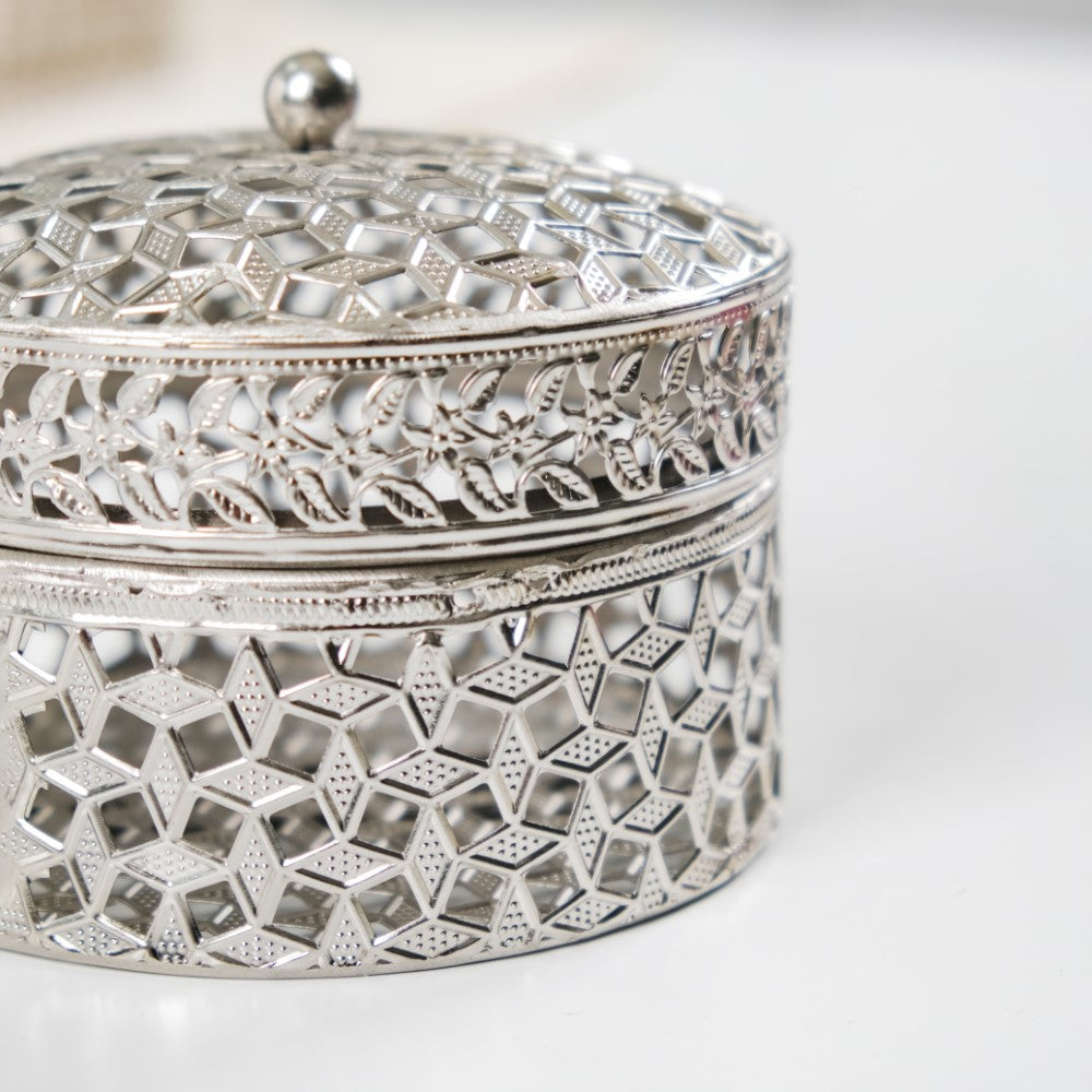 The timeless design of these jewellery boxes blends seamlessly with both modern and vintage-themed vanity setups. The vintage mosaic metalwork adds a touch of classic elegance that complements vintage aesthetics, while the high-sheen silver finish and expert craftsmanship also make them a perfect fit for modern, contemporary styles. Their versatility allows them to enhance the beauty of any vanity, regardless of the decor theme, making them a versatile and stylish addition to your space.