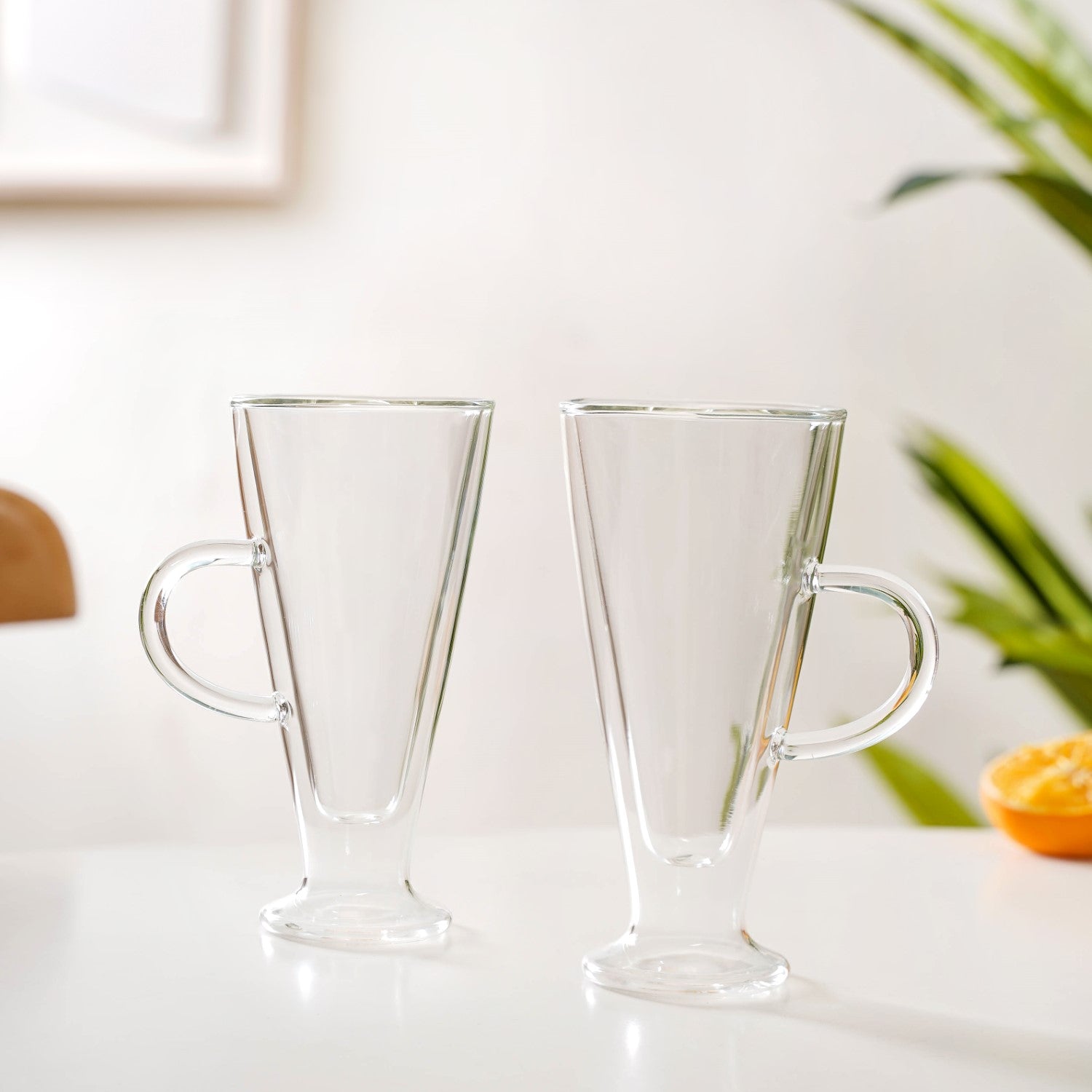 Set Of 2 Tall Double Wall Glass With Handle 250ml