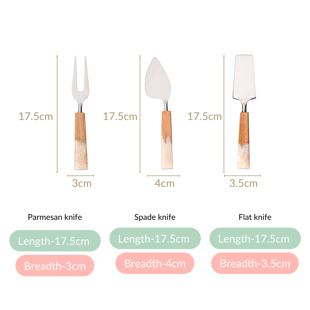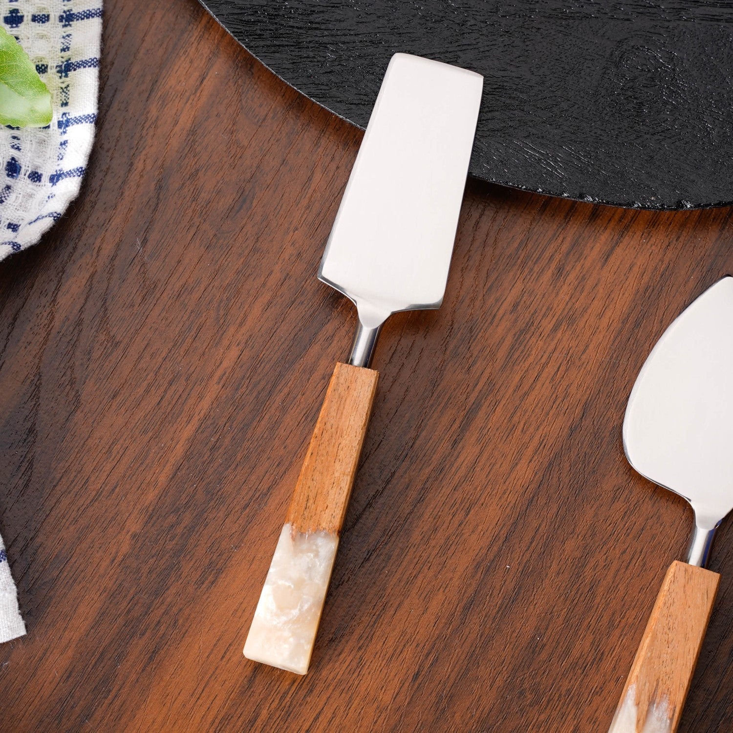 The spade knife is ideal for crumbly cheeses such as Stilton or Roquefort. Its flat, wide blade makes it easy to lift and serve crumbled cheese. The design also helps in cutting and portioning these types of cheese without making a mess.