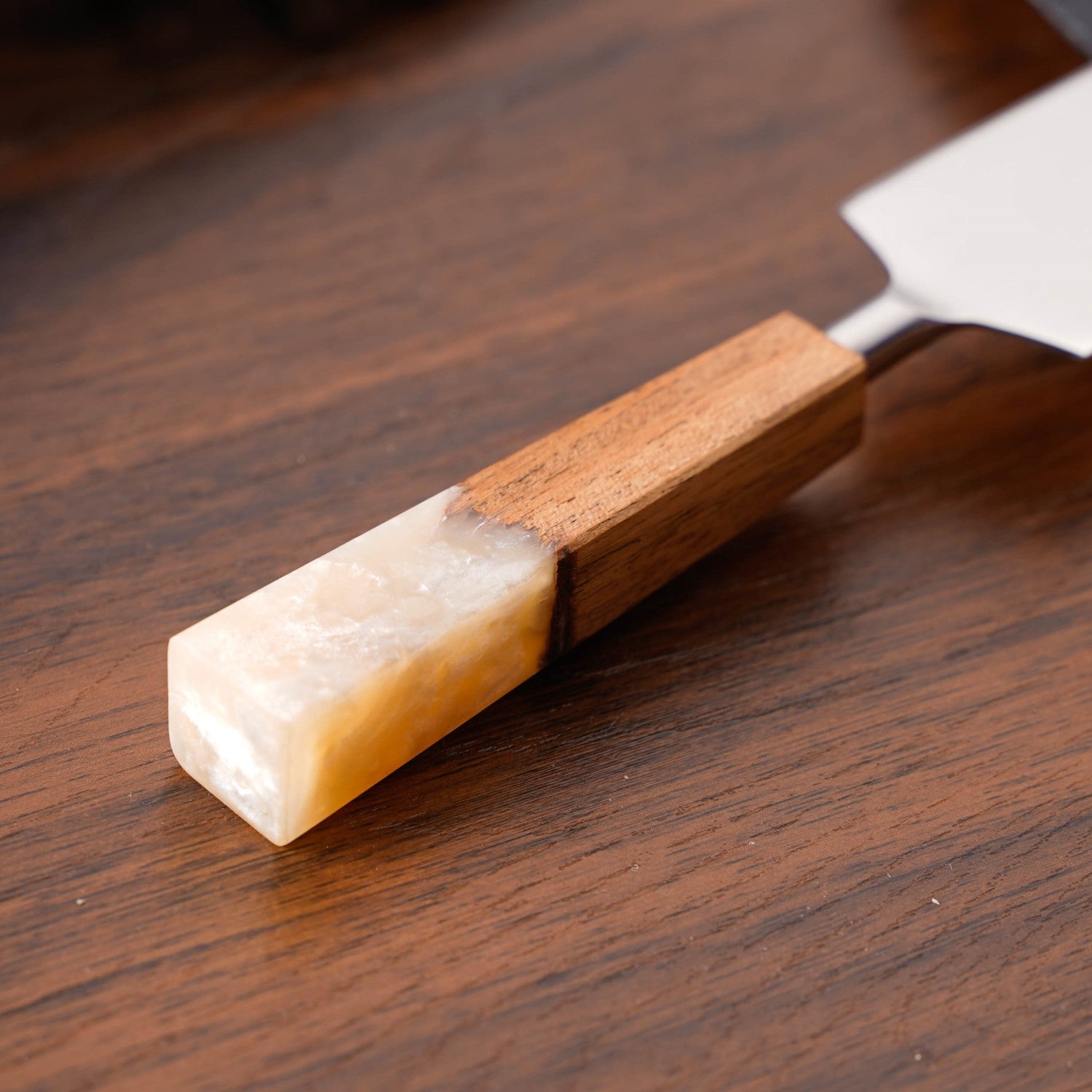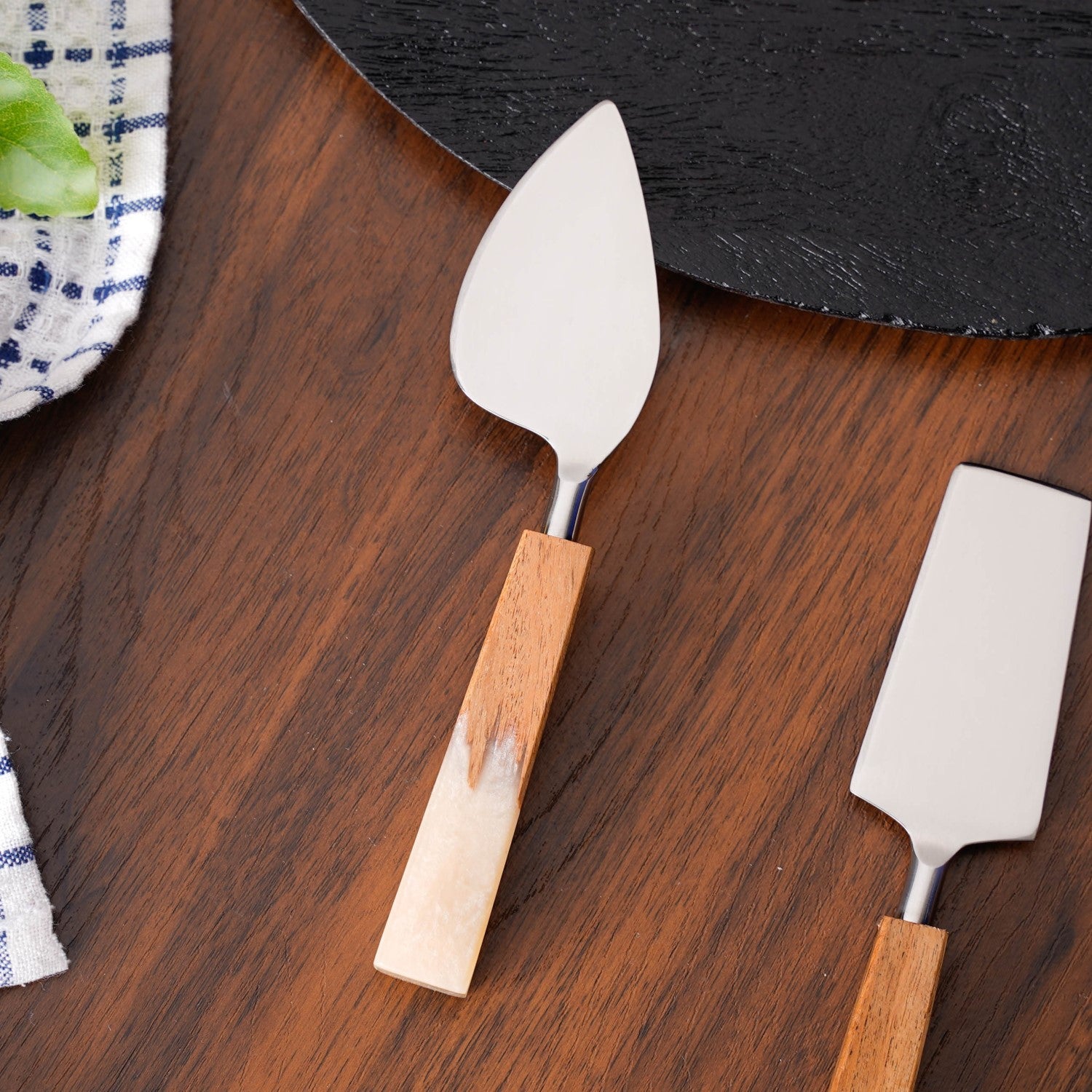 The flat knife is perfect for soft and semi-soft cheeses like Brie or Camembert. Its broad, flat blade allows for smooth, clean slicing through soft cheese without sticking to the blade, making it ideal for spreading or serving.