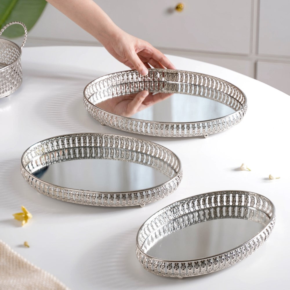 These decorative trays are constructed with premium materials that resist tarnishing and damage. The rust-resistant feature ensures they withstand the test of time even with regular use. The expert craftsmanship guarantees their durability, making them suitable for day-to-day decorative and functional purposes. Just ensure to clean them with a gentle glass cleaner and a soft cloth to maintain their pristine appearance.