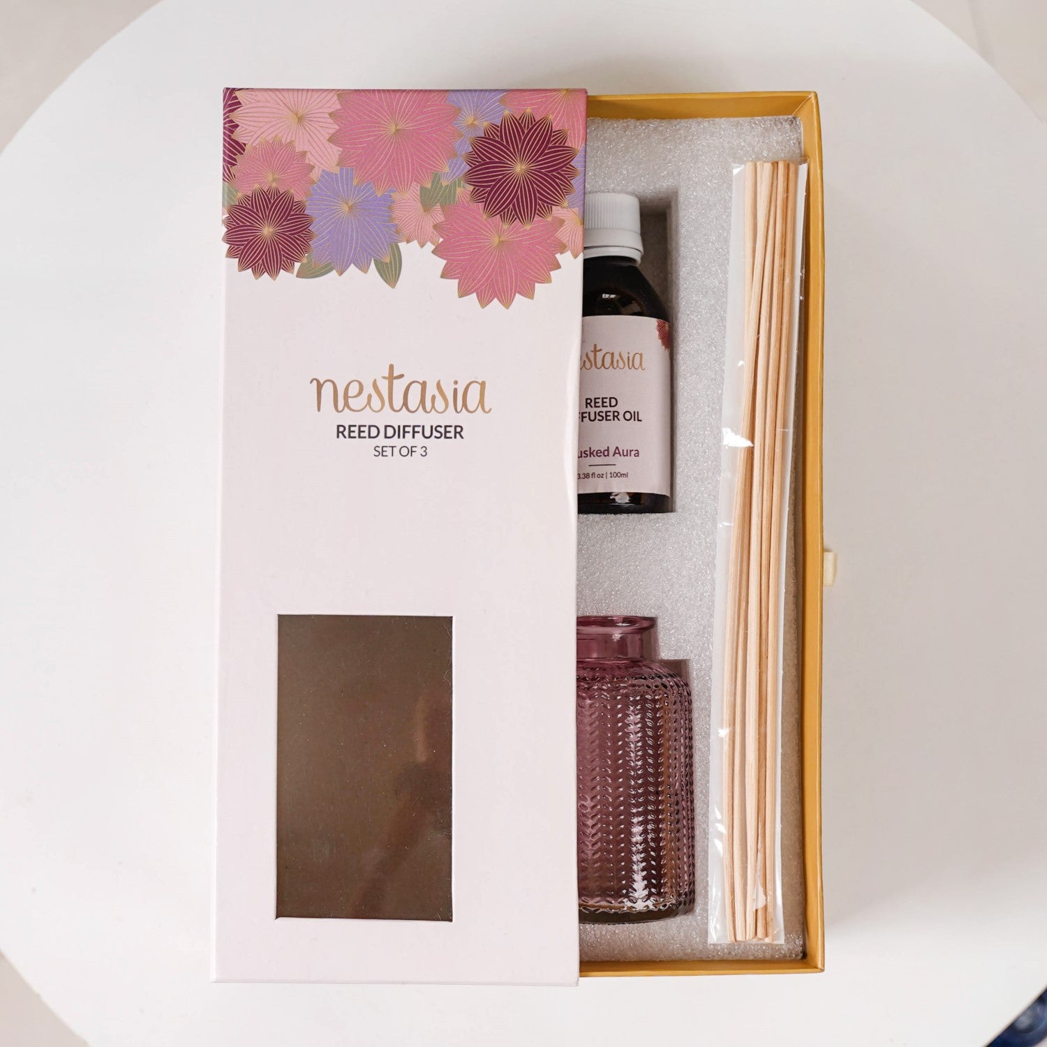 Set Of 3 Musked Aura Fragrance Bottle And Reed Diffuser