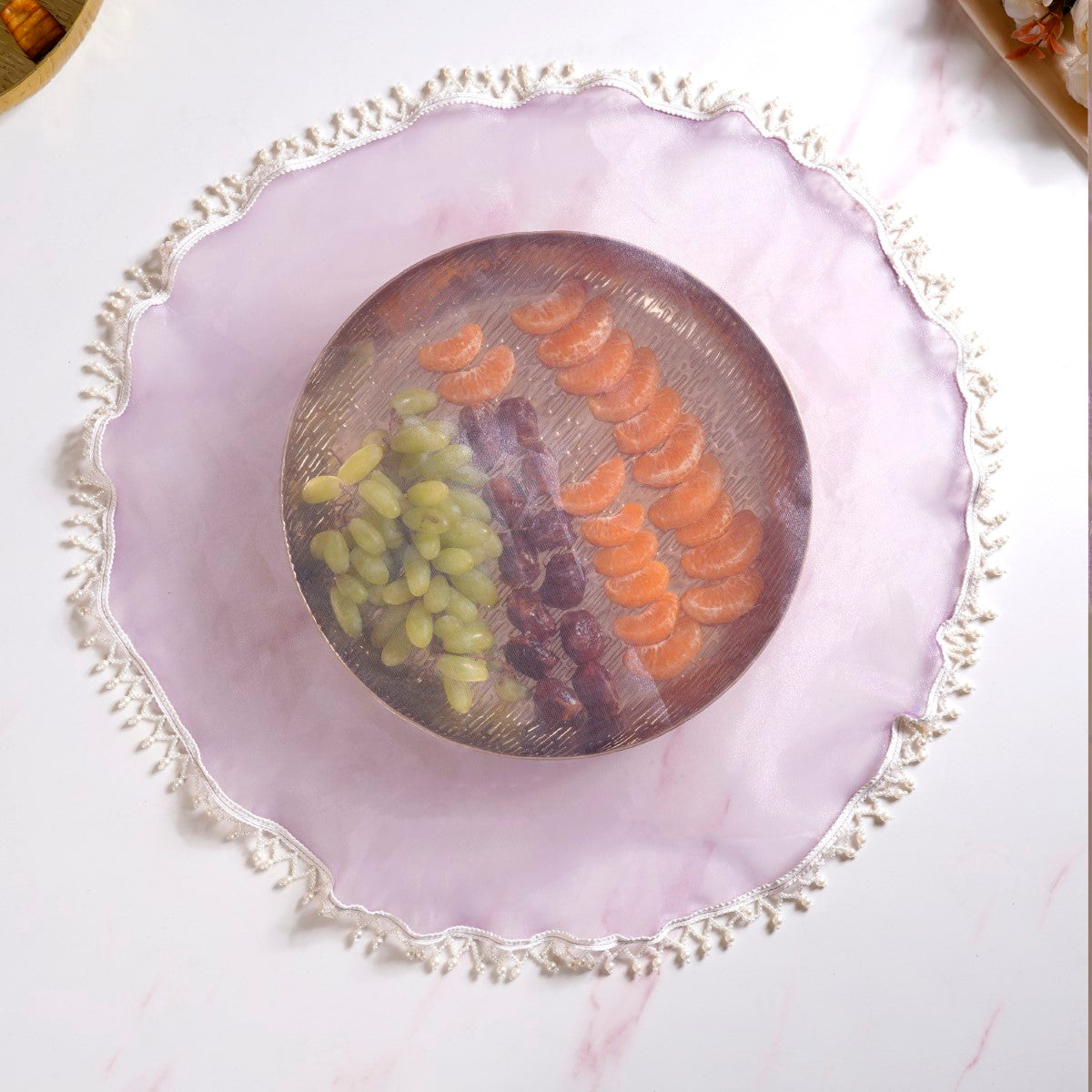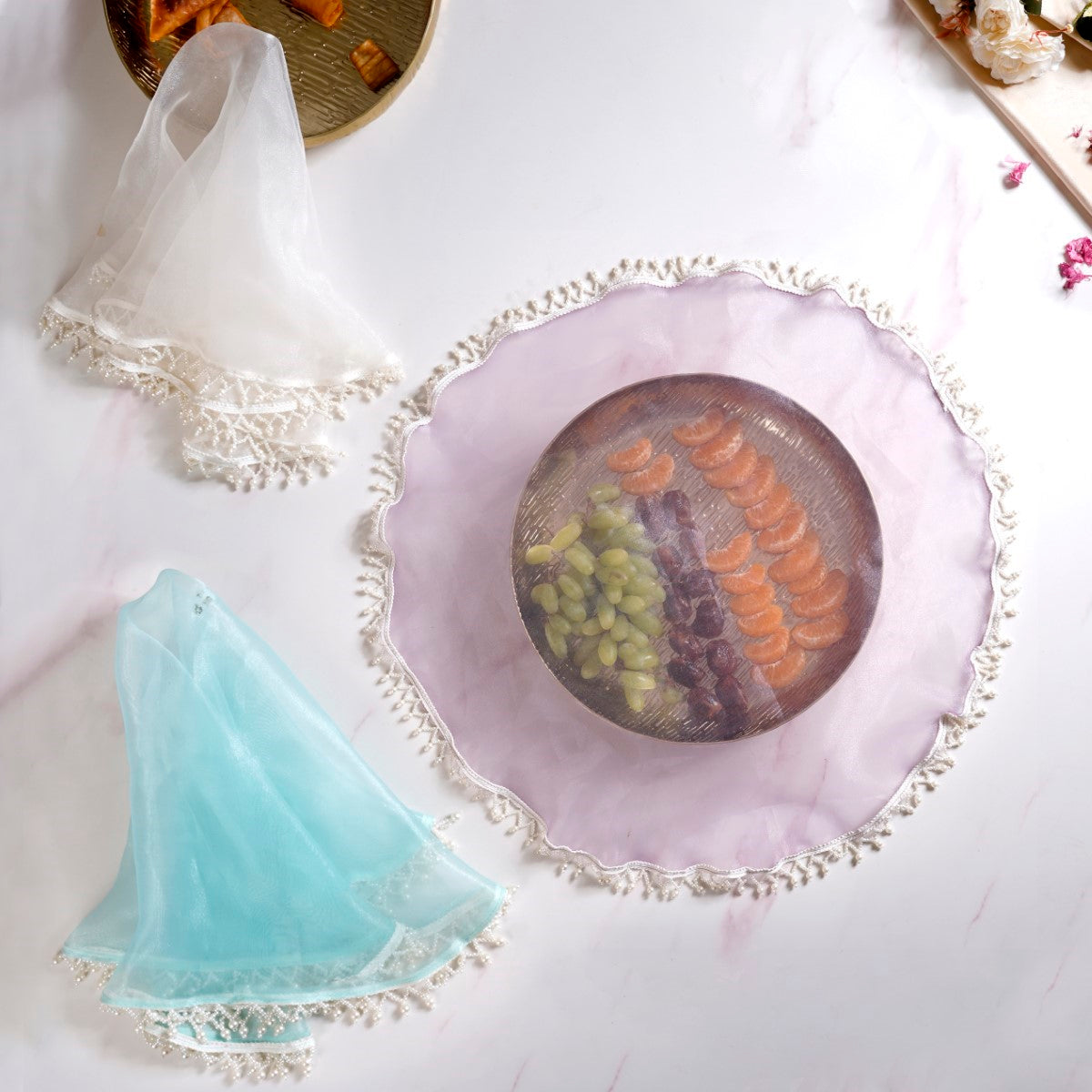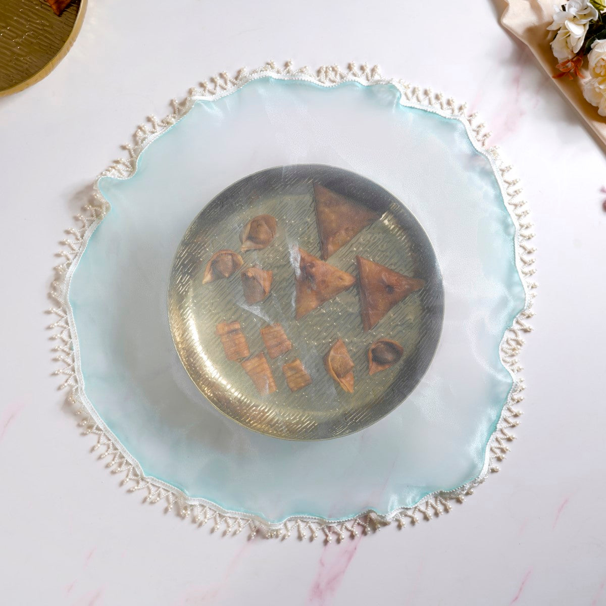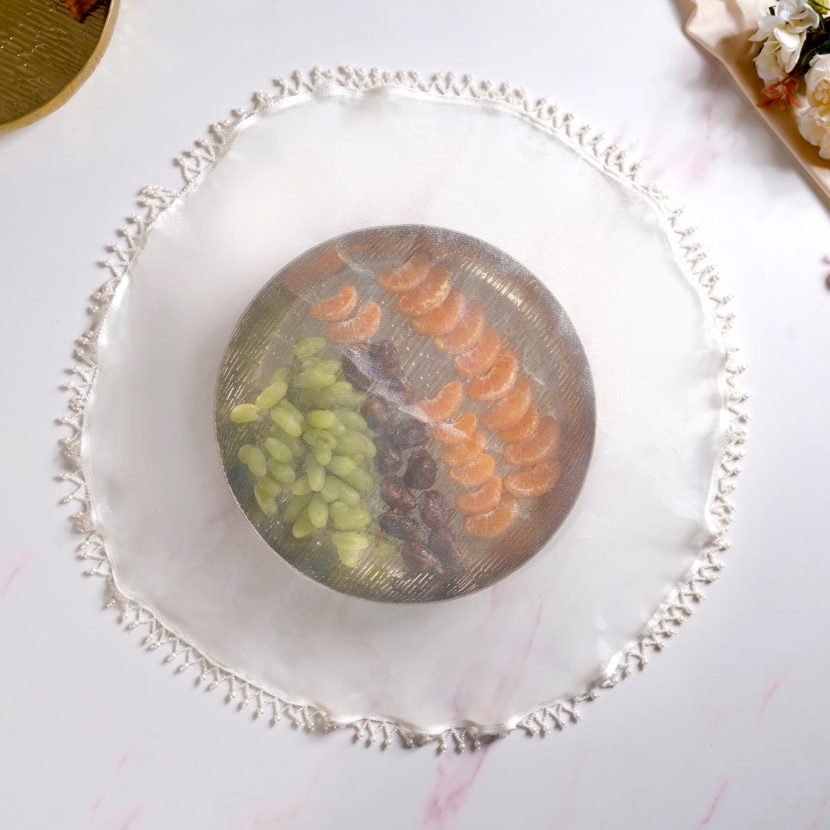 These thali covers can add a touch of elegance and sophistication to your home decor beyond traditional settings. Whether draped over a coffee table, displayed on a sideboard, or used as wall hangings, these tray covers can elevate the aesthetic of any living space with their timeless charm.