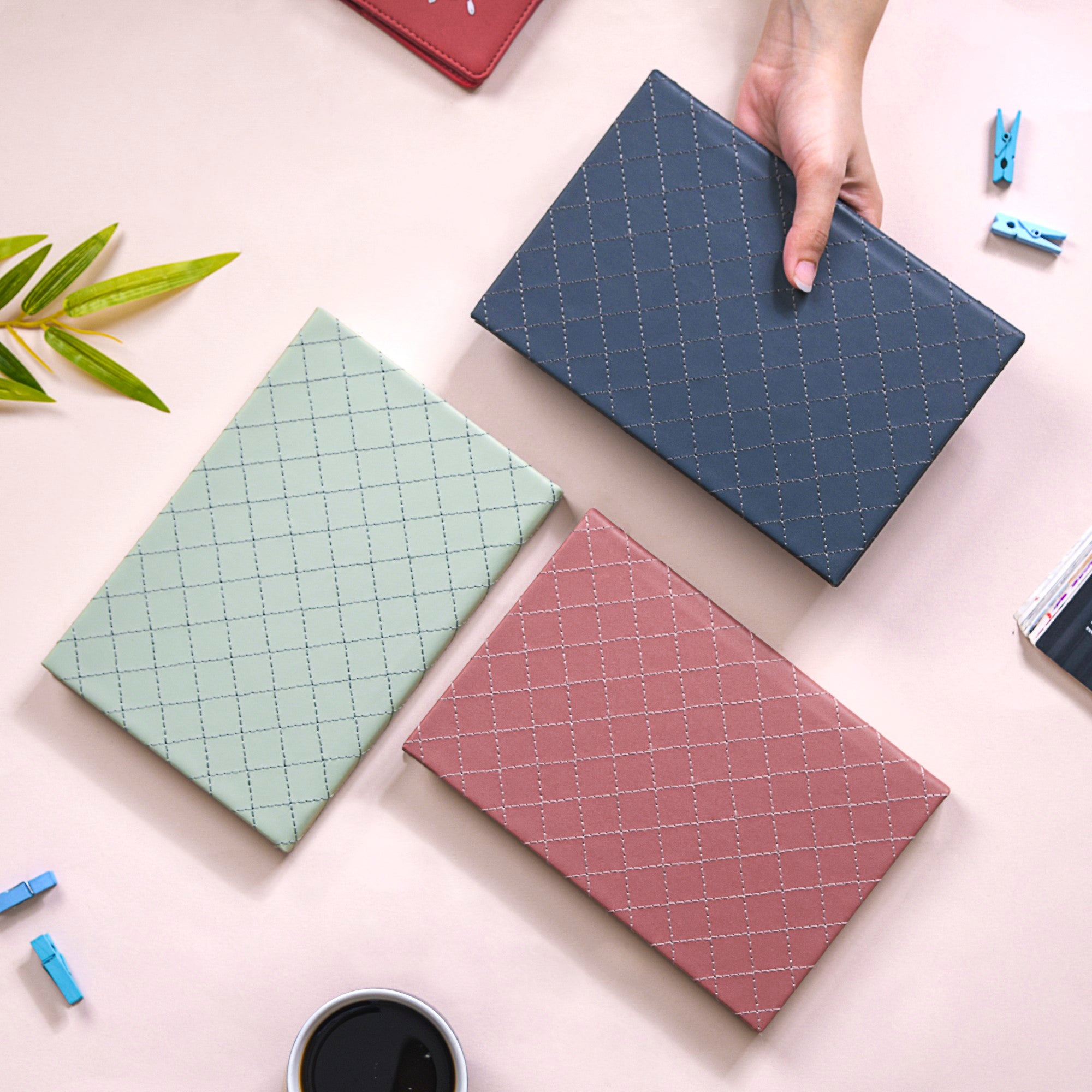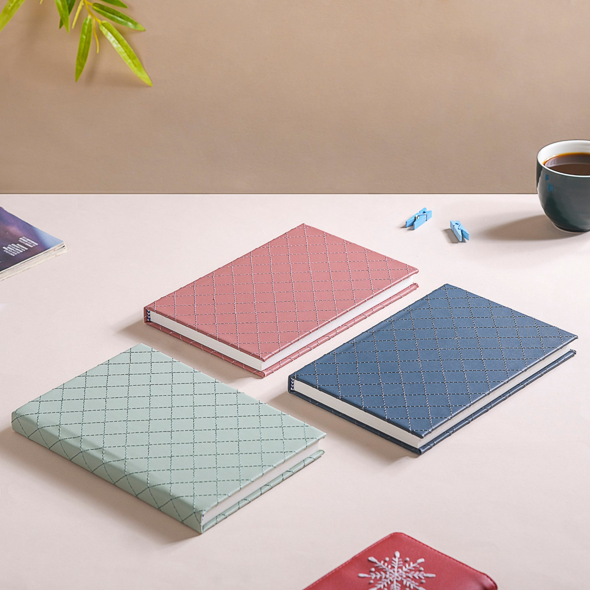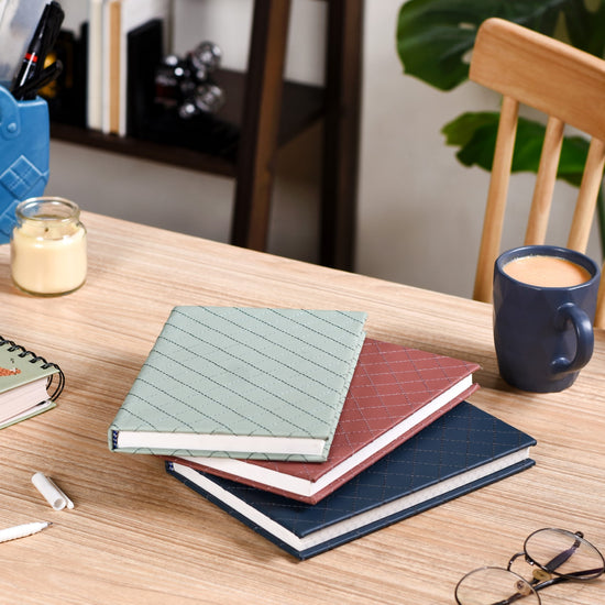 Hey there, meet our fantastic set of notebooks that are all about making your note-taking experience a real joyride. We're talking about 100 pages of pure note-worthy goodness. These notebooks are made from top-notch 90 GSM paper that your pens will absolutely love. But here's the kicker – they aren't just your average notebooks. Nope, they come with a matte finish rexine leather hardbound cover that's not just sturdy but also sleek and stylish. You'll love the stitched textured design that gives them a unique and tactile feel.