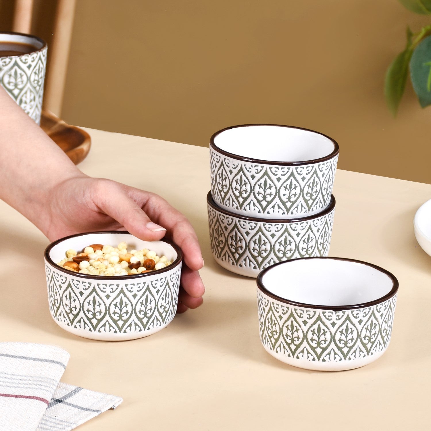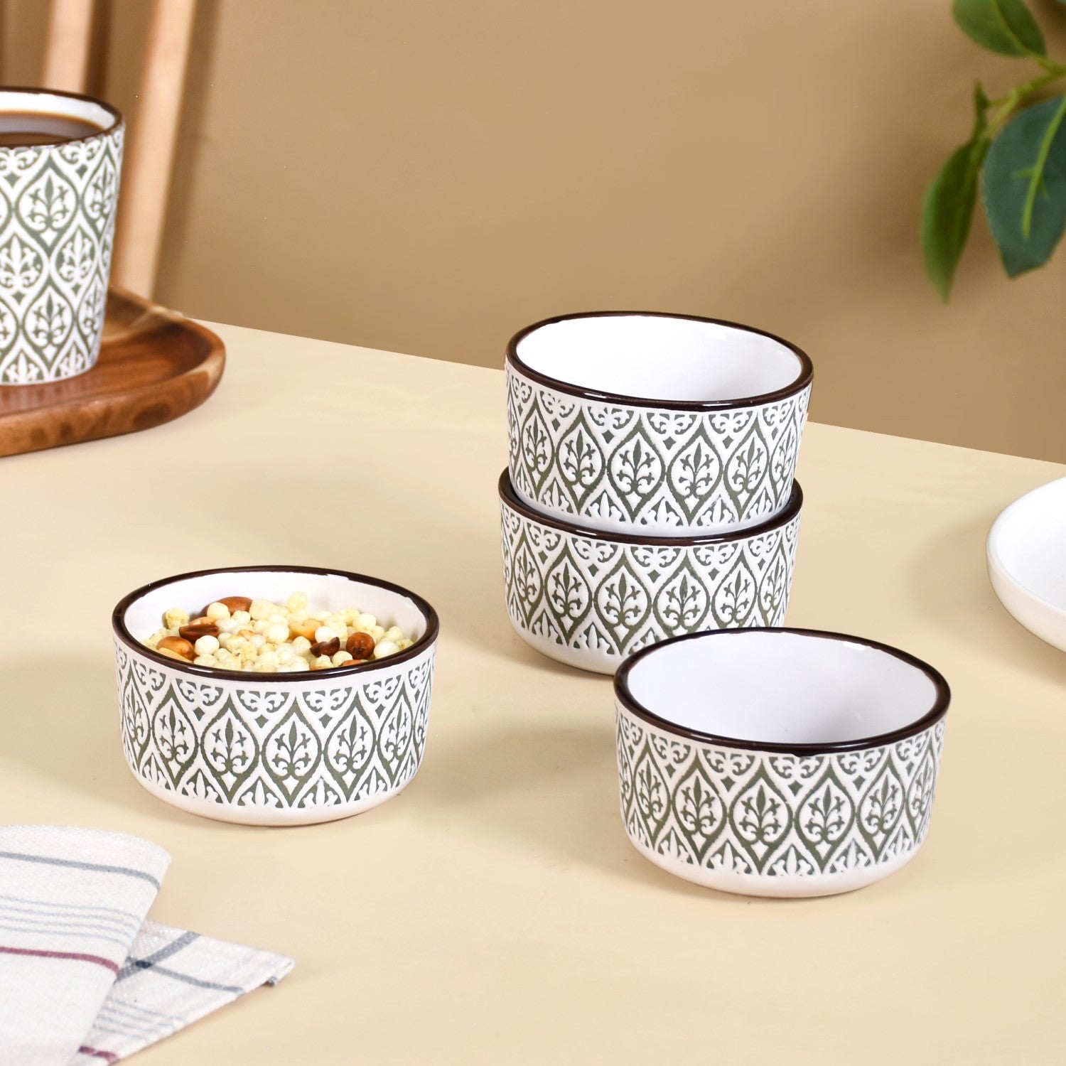 Set Of 4 Baroque Ceramic Small Bowl Green 200ml