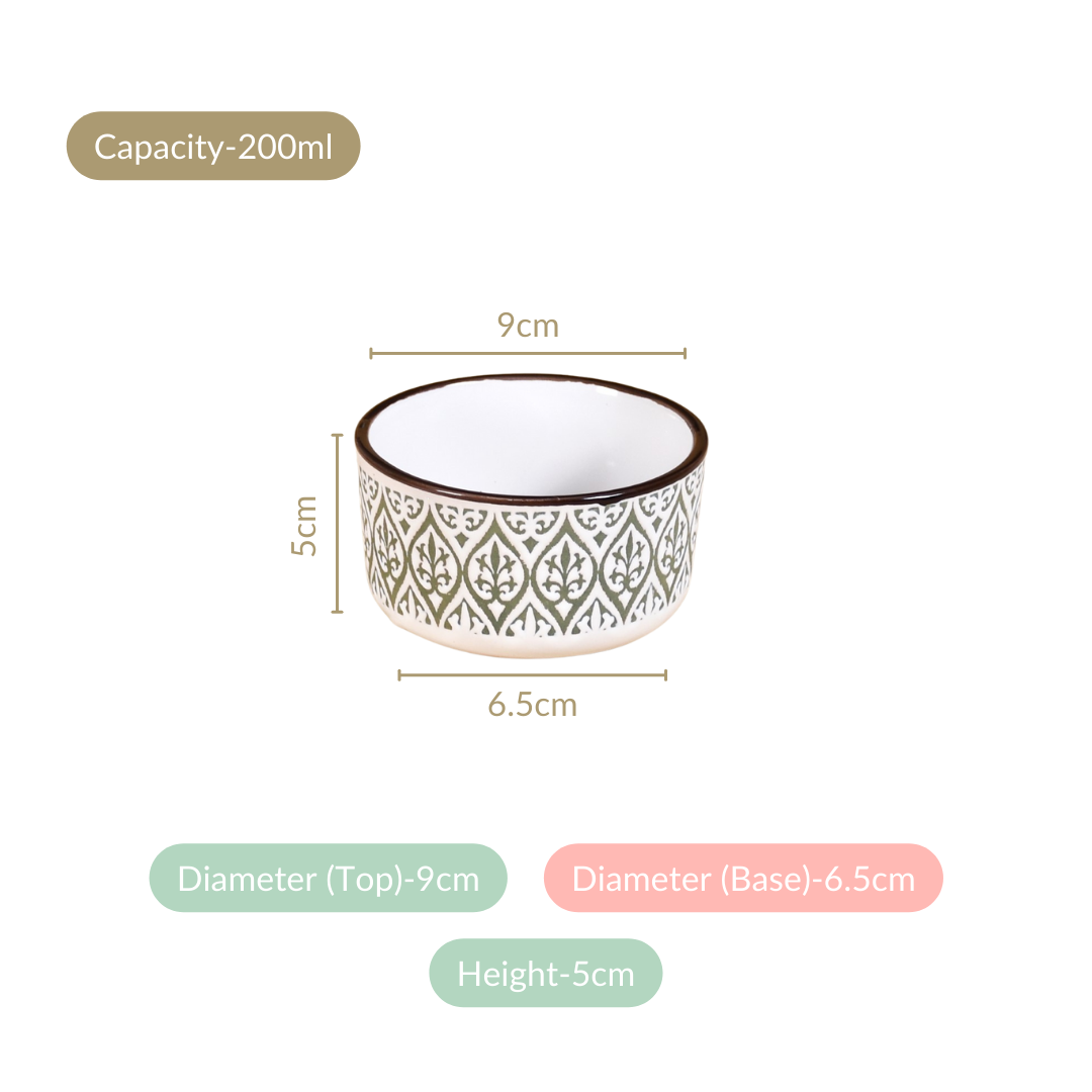 Utility: From casual gatherings to formal dinners, this ceramic snack bowl adapts seamlessly to different occasions. Whether you’re serving small snacks like nuts or olives, using it as a Katori for curries or dals, or even holding your favourite condiments, this small bowl set can do it all.